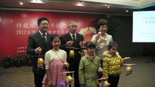 为推广两岸灯会交流活动,台旅会郭蔡文名誉会长率同赖瑟珍会长、圆山大饭店蒋祖雄总经理、义联集团吴林茂董事长等十余位台湾观光业界代表,于1月17日假南京召开记者会,向大陆地区组团社及媒体宣传推广在鹿港举办的「2012台湾灯会」,及此次江苏灯会-台湾灯区的布展情形。 延续2010年以来台湾和江苏灯会交流的成果,今年台旅会结合台湾灯艺师及观光业界,扩大参与江苏秦淮灯会,活动地点定于中华门瓮城举办,将于1月19日举行盛大亮灯仪式,台湾灯区将结合现代科技与传统灯艺,呈现出完美的灯光演出。 台旅会北京办事处杨瑞宗主任在简报中展示可爱的龙年小提灯并表示,今年灯会交流的主题定为「祥龙跃两岸 千帆迎洪福」。