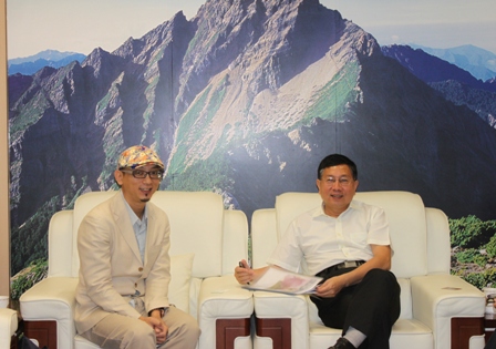 2013年9月9日出生于台湾苗栗的旅游及美食达人“蛋蛋IN北京”董孟浩,与本处主任杨瑞宗就推广台湾美食予大陆居民等事宜交换意见。(台旅会北京办事处发布讯息)