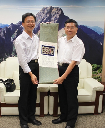 2013年9月16日彰化县文化局局长田飞鹏、鹿港龙山寺常务监察委员蔡金星一行参访本处,与本处主任杨瑞宗就促进陆客至彰化地区观光旅游等事宜交换意见。(台旅会北京办事处发布讯息)
