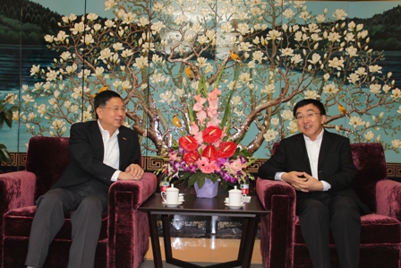 日本处杨主任代表本会谢谓君会长恭贺吴文学先生荣升海旅会副会长,双方并就两岸观光交流等事宜交换意见。(台旅会北京办事处发布讯息)