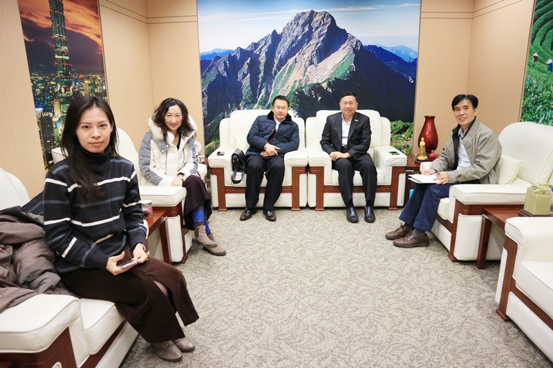 2016年11月21日旺报总编辑王绰中、主任记者罗印冲、记者李侑珊参访本处,与本处杨主任就两岸媒体交流等事宜交换意见。(台旅会北京办事处发布讯息)