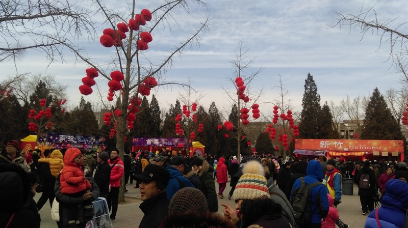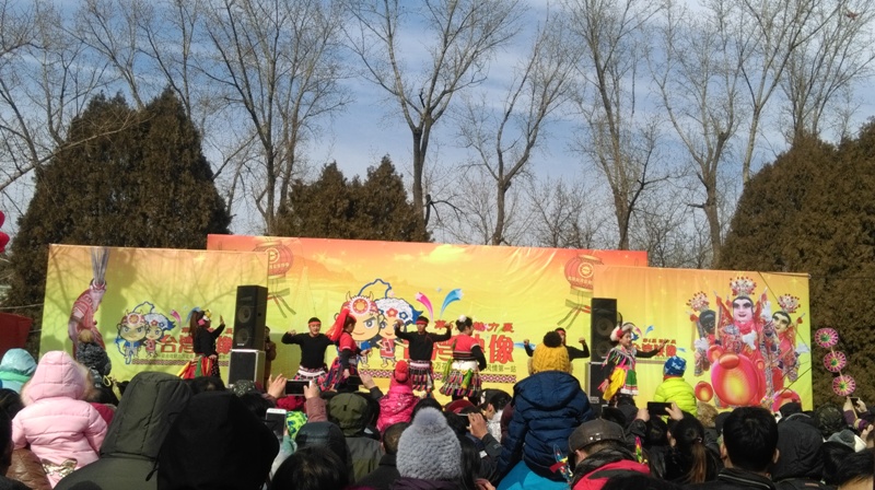 北京台商于春节期间组织业者,以"台湾映像"主题参与「地坛庙会」,展位有新北,新竹,苗栗,南投,台东,花莲,金门,马祖,台湾少数民族,夜市小吃等摊位,劲歌热舞加上各式台湾美食与精美土特产品,受到逛游庙会民众热情的追摔。本处提供鸡年小提灯、台湾自由行手册、地图折页等文宣品配合活动推广。(台旅会北京办事处发布讯息)