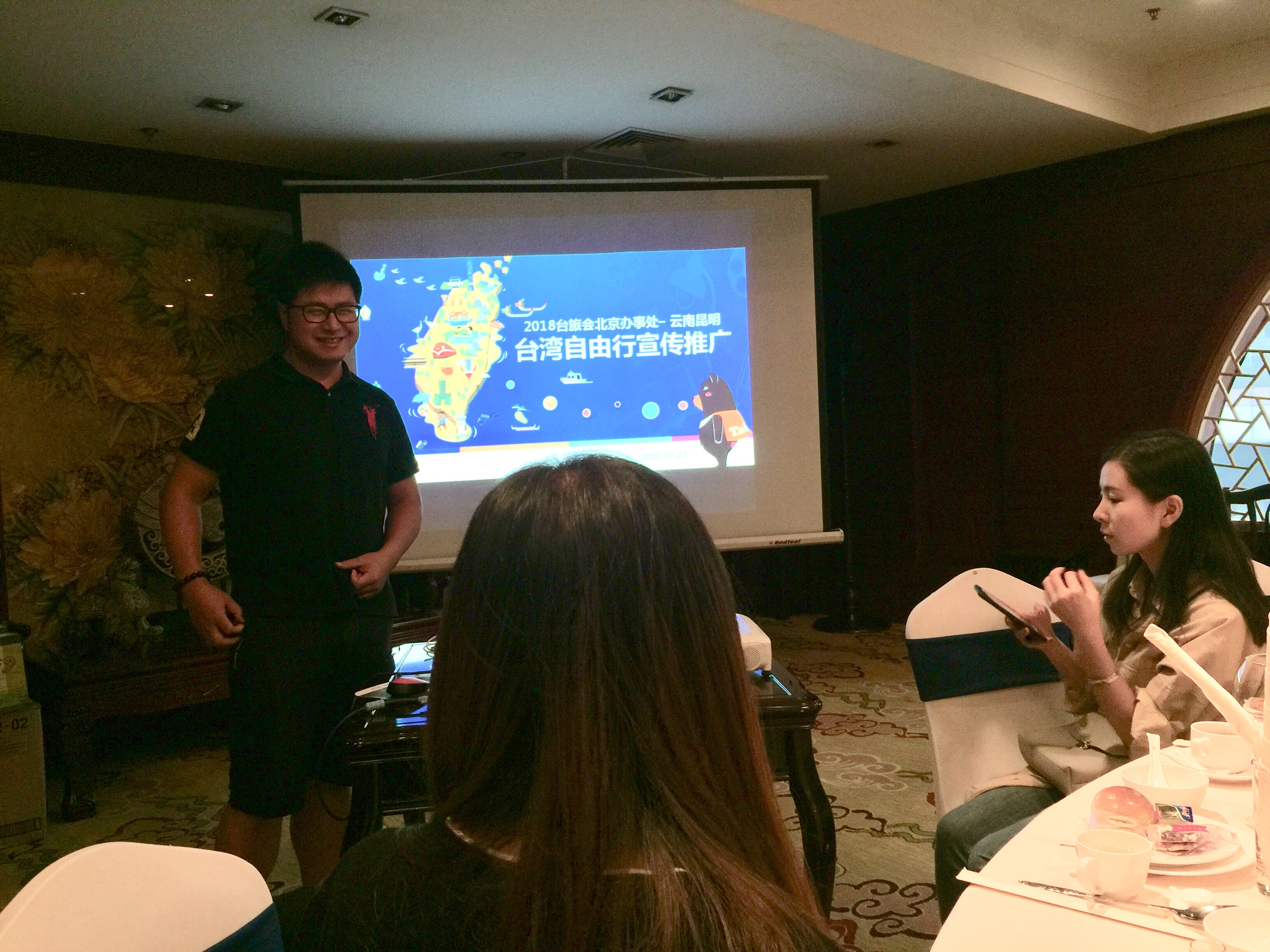 本处2018年7月27日于昆明举办台湾自由行旅游宣传推广活动,立荣航空昆明办事处及组团社负责台湾旅游产品线之主管人员共20人参与。本次活动以推广海湾旅游、南台湾分区游、2018台中世界花卉博览会为主轴,并邀请赴台游自由行产品规划达人-李成经验分享,强化组团社创新台湾自由行产品规划能力。(台旅会北京办事处发布讯息)