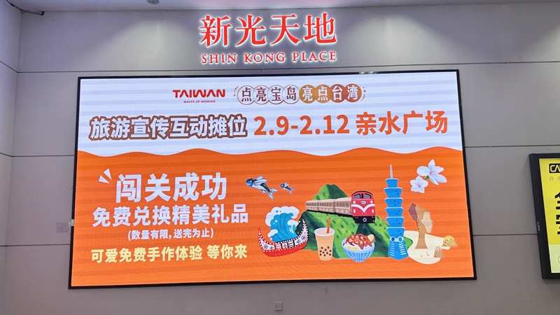 2025年2月9日-12日,为响应元宵节以及台湾灯会在桃园的主题活动,本处与成都新光天地百货商场业者共同合作,在商场中的室外亲水广场办理「点亮宝岛‧亮点台湾」台湾旅游形象宣传活动。本次活动为期4天,设计有七个交互式游戏展位、台湾特色小吃文化介绍和DIY手作课程。同时,现场也结合福蛇形象灯组展示,发放台湾灯会「溜溜蛇」小提灯,提升元宵节过节的仪式感与气氛。现场活动吸引了众多在地民众参与,提升台湾整体的旅游形象认识。