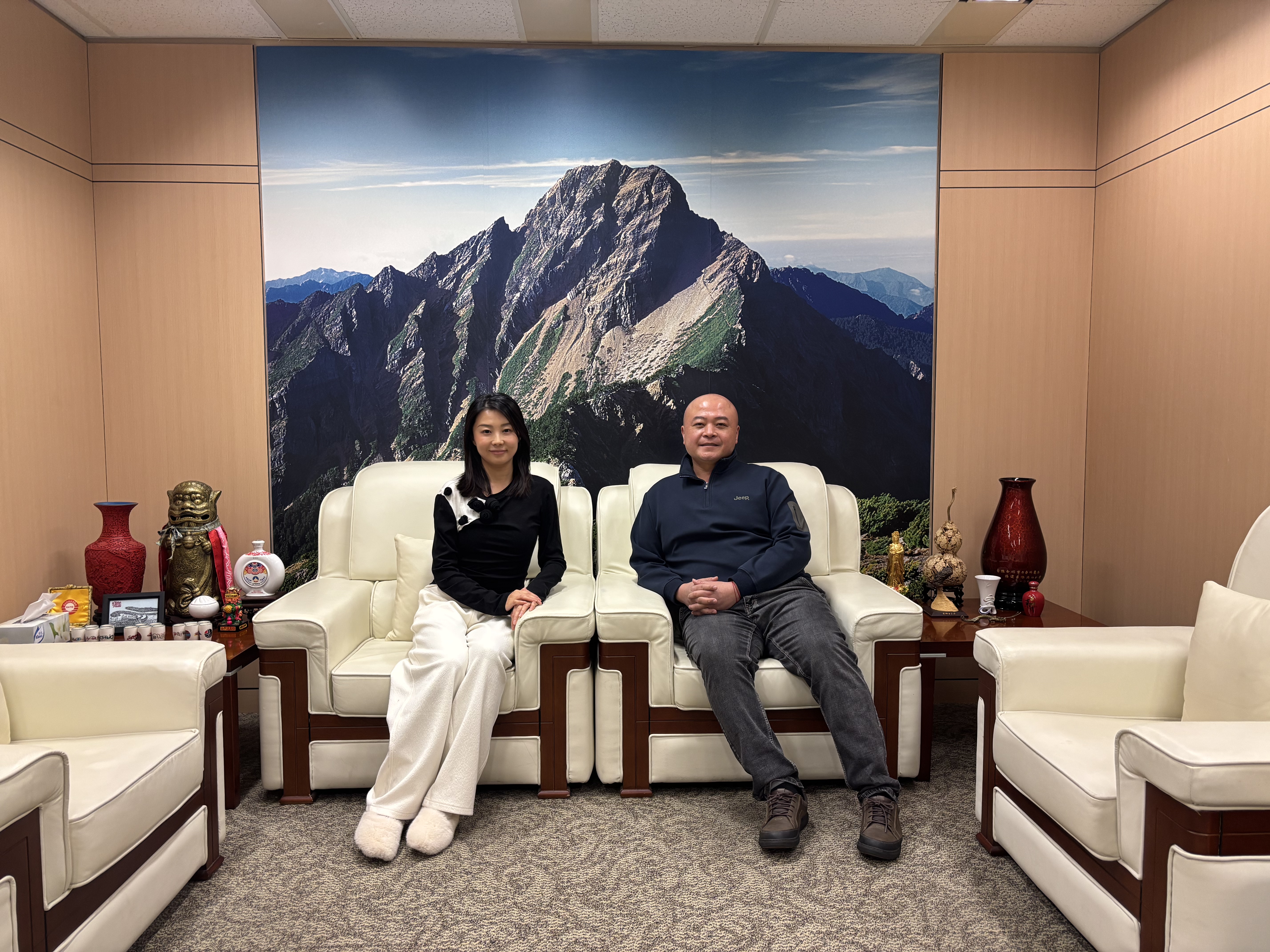 2025年11月20日中华航空北京办事处易可经理与销售代表梁梦雪拜访本处,了解目前两岸人员往来发展概况及介绍现行企业用户服务内容。