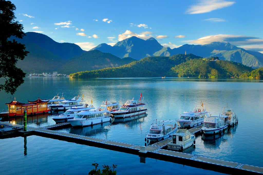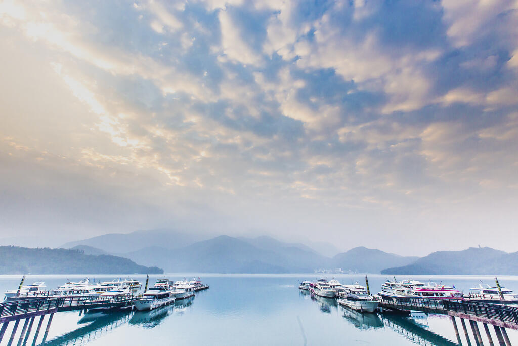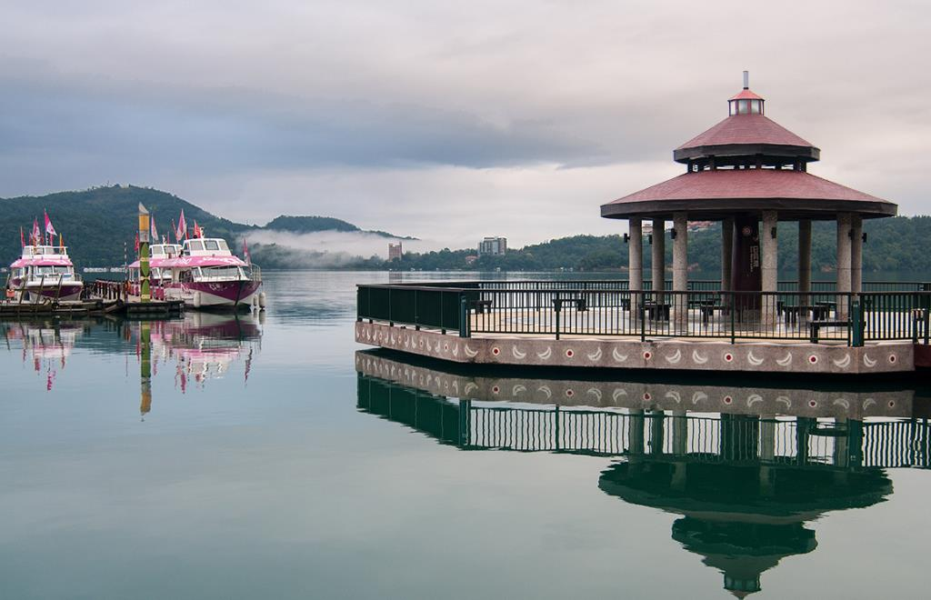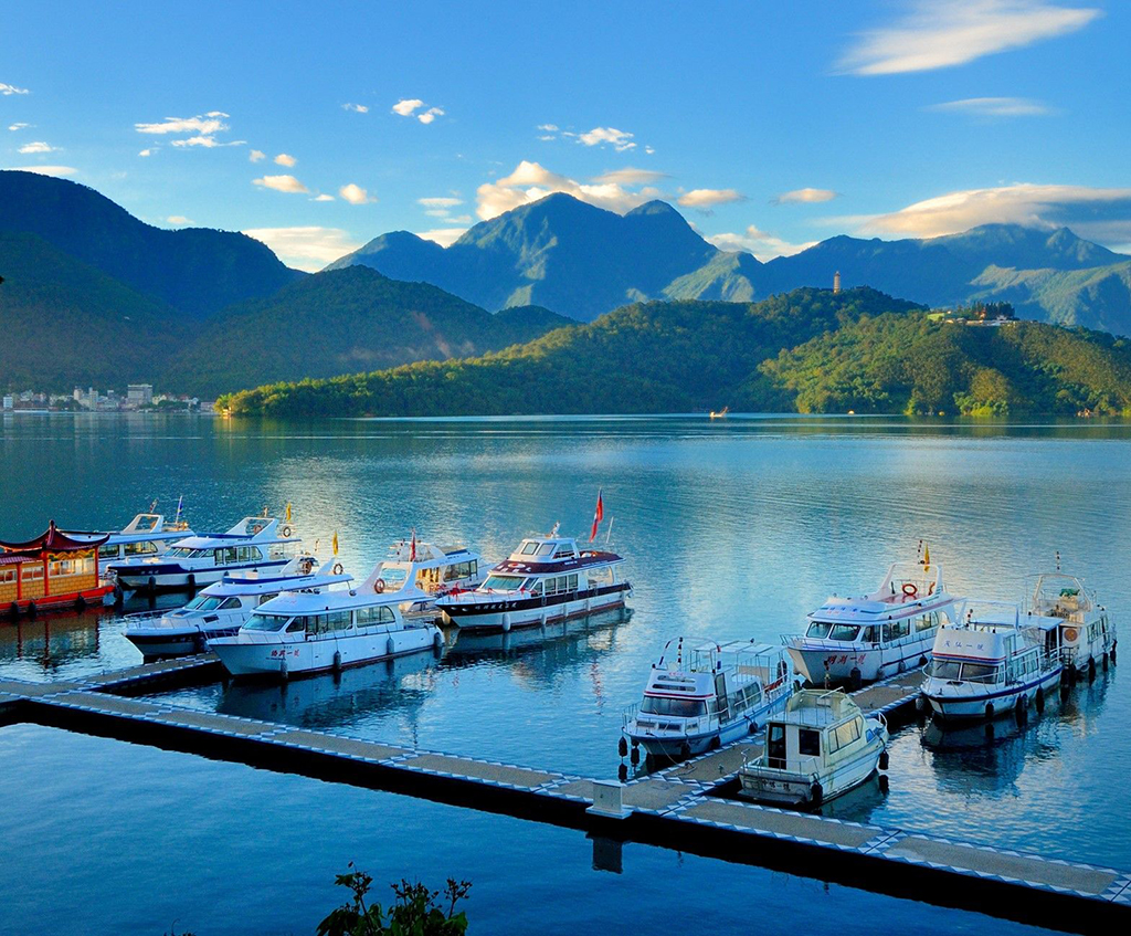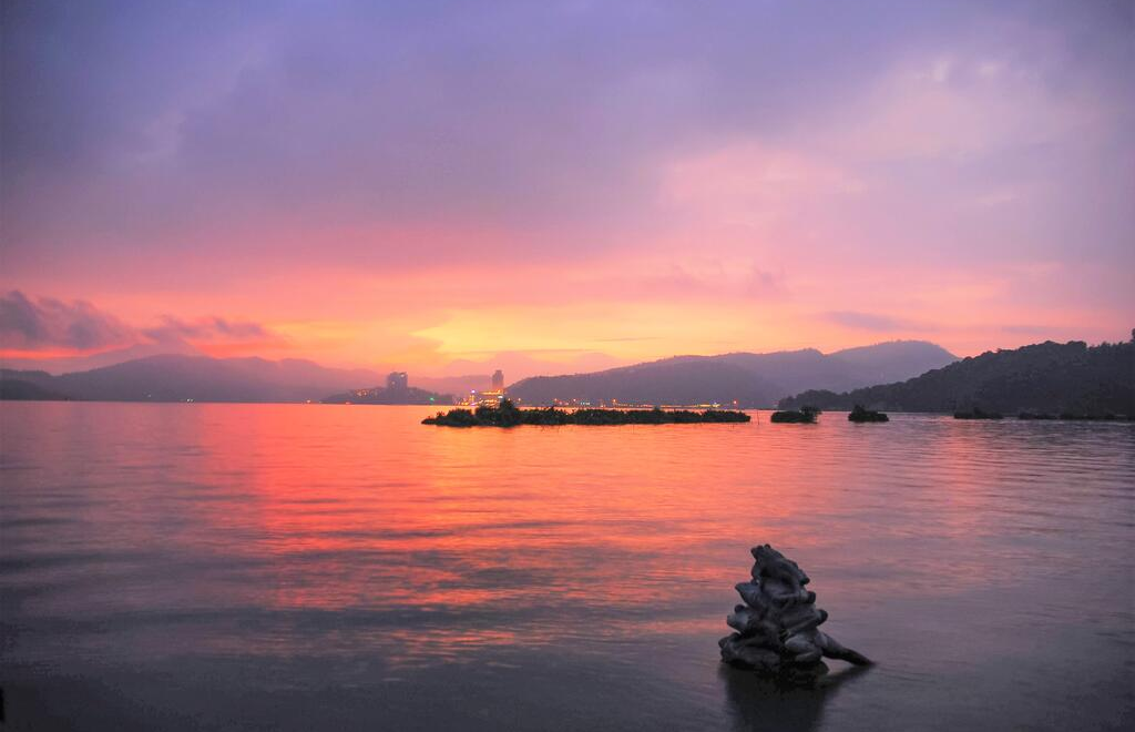 日月潭潭面清澈碧绿,群山环抱,山水辉映,风光旖旎,而日月潭的美,从清晨到黄昏,从春夏到秋冬,无论风和日丽或烟雨迷蒙,都回荡着绮丽的风姿,令人百看不厌、赞叹不绝!清晨时分,潭面披上一层薄纱,荡漾着朦胧的美;当旭日从山峦升起,原本朦胧的潭影,慢慢显出轮廓,潭面倒映着山形树影,与虫鸣鸟叫相映成趣;黄昏时刻,湖水被夕阳染成闪耀金光,彷佛琉璃仙境;当夜幕低垂,灯光倒影随着潭面水波晃动摇曳,沁凉晚风拂来,宛如精灵洒下浪漫香氛,让人迷醉!