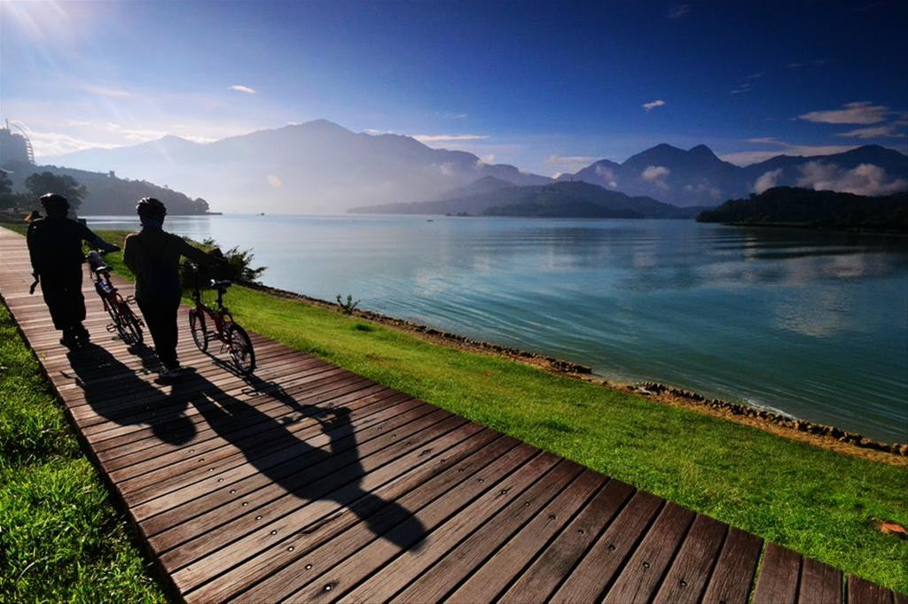 伊达邵段的自行车道串联了水蛙头步道与日月潭缆车,游客可以骑单车到伊达邵亲水步道,欣赏湖光山色的日月潭。