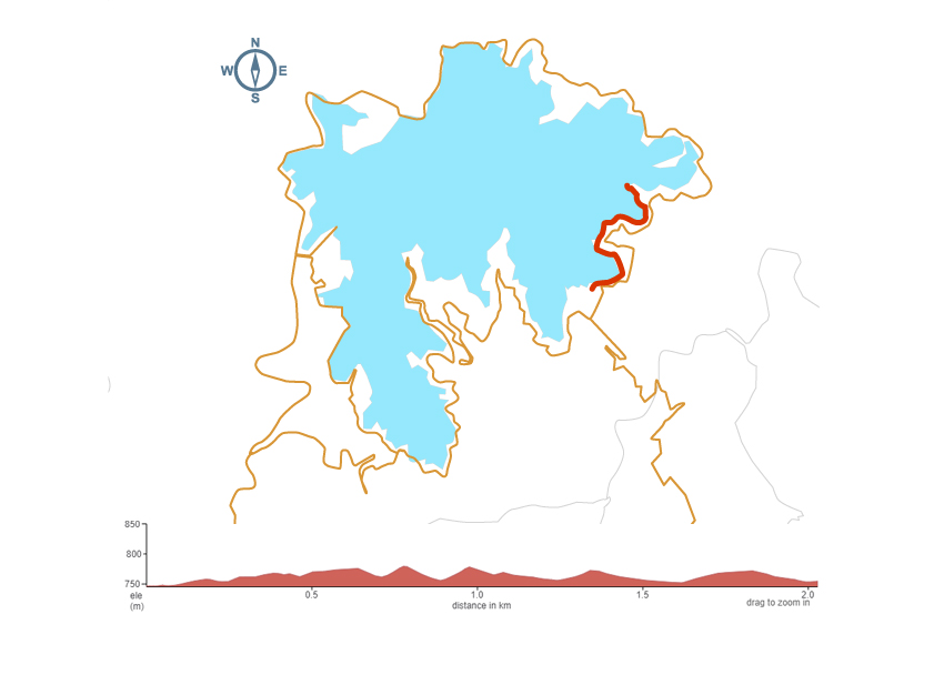 本段自行车道由水社码头沿着日月潭岸往北延伸至朝雾码头、竹石园、文武庙,途经九龙口,全长约3.5公里。伫足于此,欣赏水上景观浮田之外,还能眺望远处的慈恩塔、青龙山及二龙山等山系,部分路段也可眺望涵碧半岛及水社码头,是坡度平缓的大众路线。