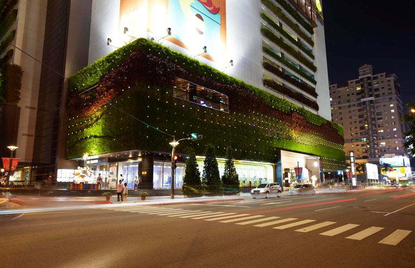勤美诚品绿园道是位在西区公益路与草悟道旁的购物商场。原本这栋建筑物本是半废弃的停车场大楼,在勤美与诚品团队接手之后,为了让这栋建物能与周遭的绿意融合,坚守尊重自然的理念,在结合数百位专家克服万难之后,决定让四周的绿意往墙面上延伸,打造一座让植栽与建筑共生的都市立体花园。 这是台湾第一座大型植生墙,外墙上总共有12万颗植栽自然生长,3楼诚品书店是中区最大的旗鉴店,让勤美诚品绿园道成为自然人文新地标,代表台湾荣获素有不动产届奥斯卡奖之称的「2010年全球卓越建筑奖」。