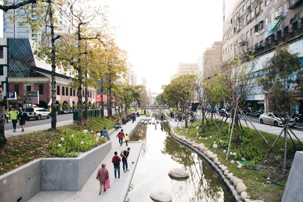 中区绿川原名「新盛溪」,于公元1912年更名,是日据时期台中「小京都」计划中的亮点河川,小小一条新盛桥(现中山绿桥)是当时台中八大夜景之一。结合宫原眼科及中山绿桥、樱桥遗迹等历史建筑,营造具人文气息的景观河岸,形塑人文水岸空间氛围。承昔往日沿岸绿荫的记忆,以台湾原生树种及护岸垂悬植物,呈现独特的水路空间,建筑新的绿川林荫步道。