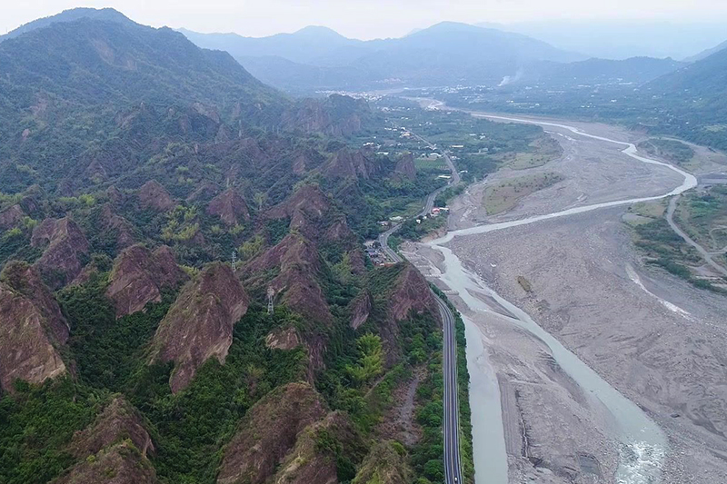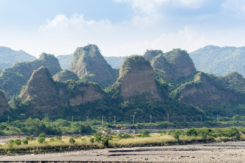 台湾有三处火炎山地形,十八罗汉山正是其一,由40多座巨厚砾石层、直立圆锥状山脉组成,山形像火焰,又称火炎山。地形多样奇特,有U型谷、峡谷、山头、曲流、干旱溪谷,就像十八罗汉守护天地,传说是六龟区的守护神,有「小桂林」之美誉。