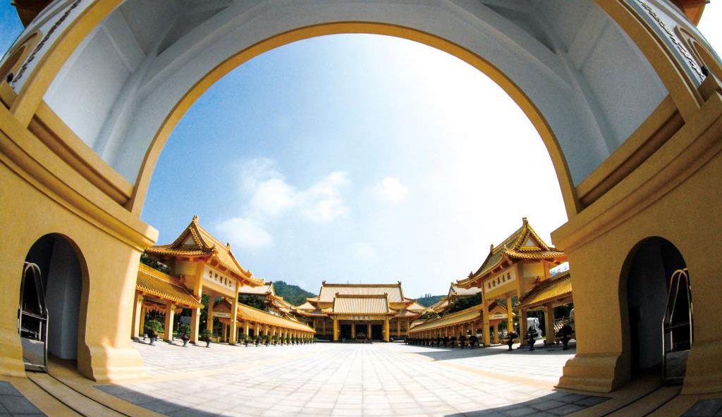 神威天台山是亚洲最大的一贯道道场,隐居六龟灵山,园区主体建筑群以金白色系为主轴,屋顶镀金琉璃瓦,呈现古典与现代兼具的气派宫殿风格。一旁新威森林公园桃花心木大道,是情侣散步及拍照的最佳选择。