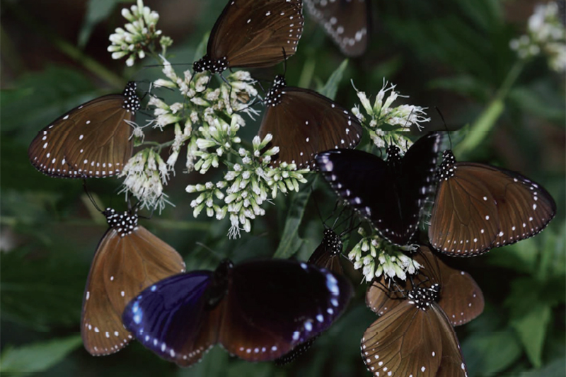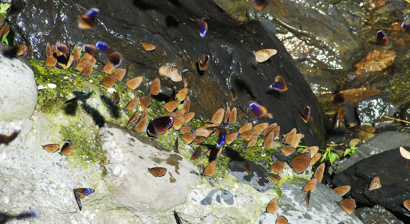 紫斑蝶为罕见越冬型蝴蝶,每年冬季时,均会不约而同飞抵茂林的紫蝶幽谷越冬,茂林和六龟地区紫斑蝶栖息的溪谷,不仅可见端紫斑蝶、斯氏紫斑蝶、小紫斑蝶和圆翅紫斑蝶,也可见到色彩更鲜丽的青斑蝶。