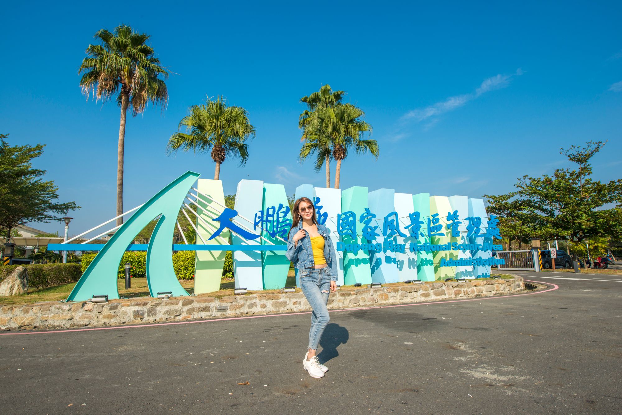 大鹏湾风景区入口招牌,海天蓝色系的视觉意象,是环湾道路的起点,在此拍下开始的瞬间,开启大鹏湾悠闲假期的美好旅程。