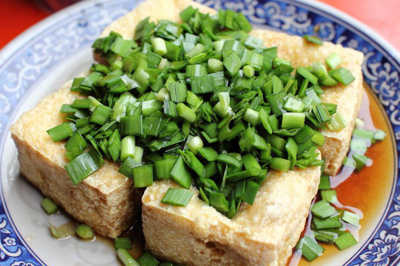 臭豆腐是台湾常见的美食,一般吃臭豆腐都是搭配脆口的泡菜,而游翁臭豆腐却是使用花莲在地产的韭菜,是台湾其他地区罕见的吃法。