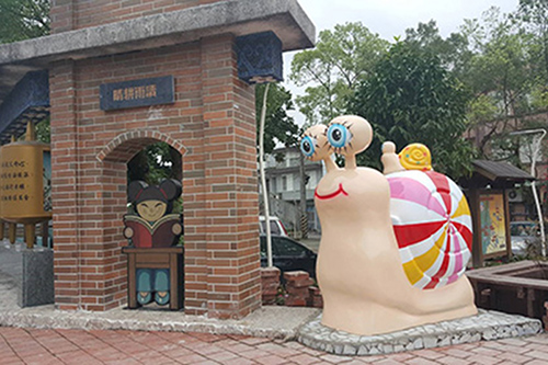 何谓晴耕雨读?就是当天气好时不忘下田耕作,不忘记人与土地的连结;天气不好、农闲时也不忘充实自己,珍惜光阴。凤林火车站前的晴耕雨读和蜗牛意象,就是希望提醒所有人善用时间,而一旁的转经轮则写上客家谚语,将客家文化散播出去。