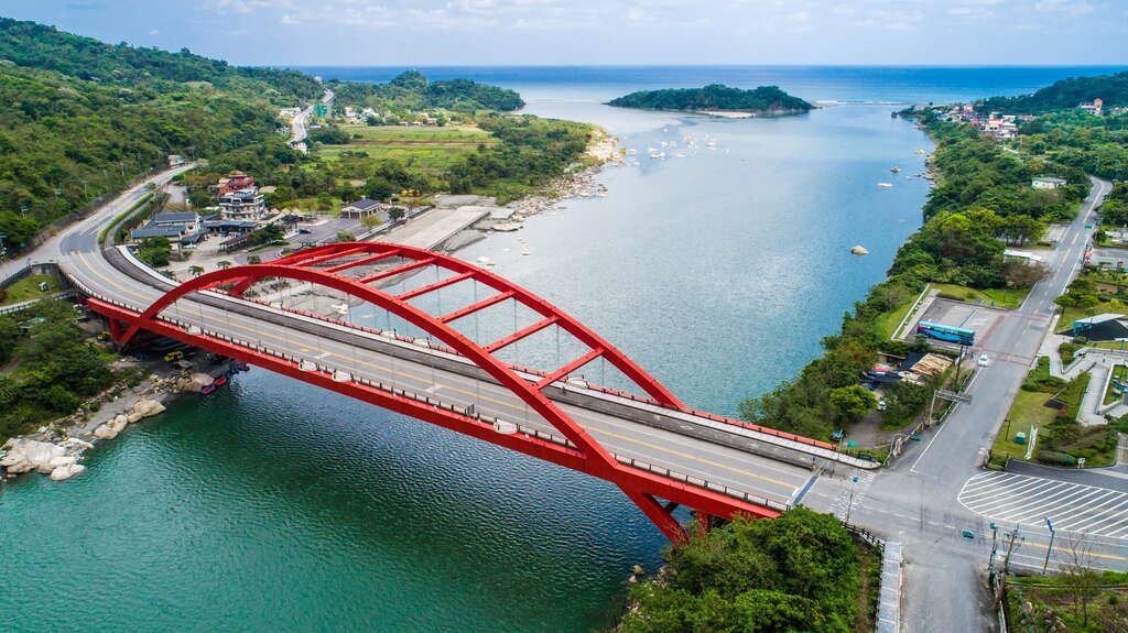 长虹桥优雅的拱形桥身横跨在秀姑峦溪出海口处两岸,在山海交际之处形成一道美丽的虹影,成为东海岸的著名拍照地标,而这里也是泛舟的终点站,一艘艘疲倦又满足的泛舟筏在这里靠岸。沿着步道在溪畔漫步,水鸟轻巧的在河床边觅食,自行车来来往往,两旁的植物随季节变换风景,若是累了,不妨到附近的新太平洋1号店稍作休息,喝杯下午茶,度过悠闲的时光。