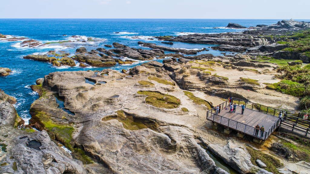 石梯坪特殊的地质地形景点多分布在沿海保护区、游憩区内,以多层阶梯状的隆起岩海阶而得名,上面布满壶穴、珊瑚礁。沿着石板步道,可深入观察海蚀沟、海蚀崖、海蚀平台、隆起珊瑚礁地形地质景观,此地也是潜水者及海钓者十分热门的去处。