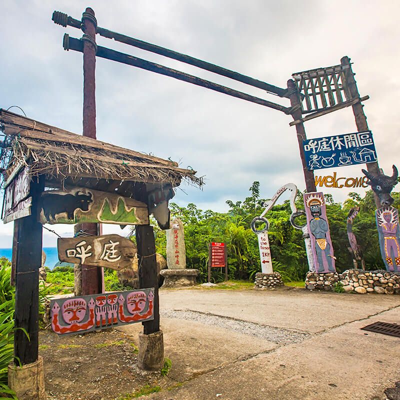 「呼庭」是阿美族语中放牧地的意思,花莲水琏的牛山正是当地阿美族牧牛的草原区,随着生活习惯改变,现在大草地上已不见牛只,换上原住民意象的装饰,让旅客体会原民风情!坐在草地上,吹着凉风看海,也能进到餐厅品尝风味餐,是台十一线上热门景点之一!