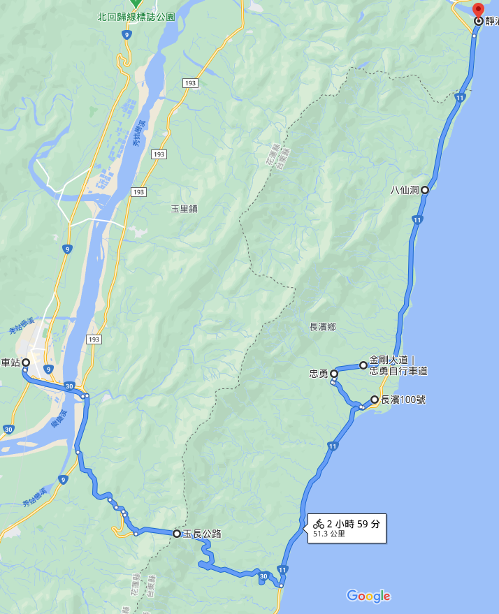 - 【第1日】玉富自行車道→玉長公路→俯瞰太平洋路線(長濱→忠勇→金剛大道)→八仙洞→太陽的部落-靜浦部落