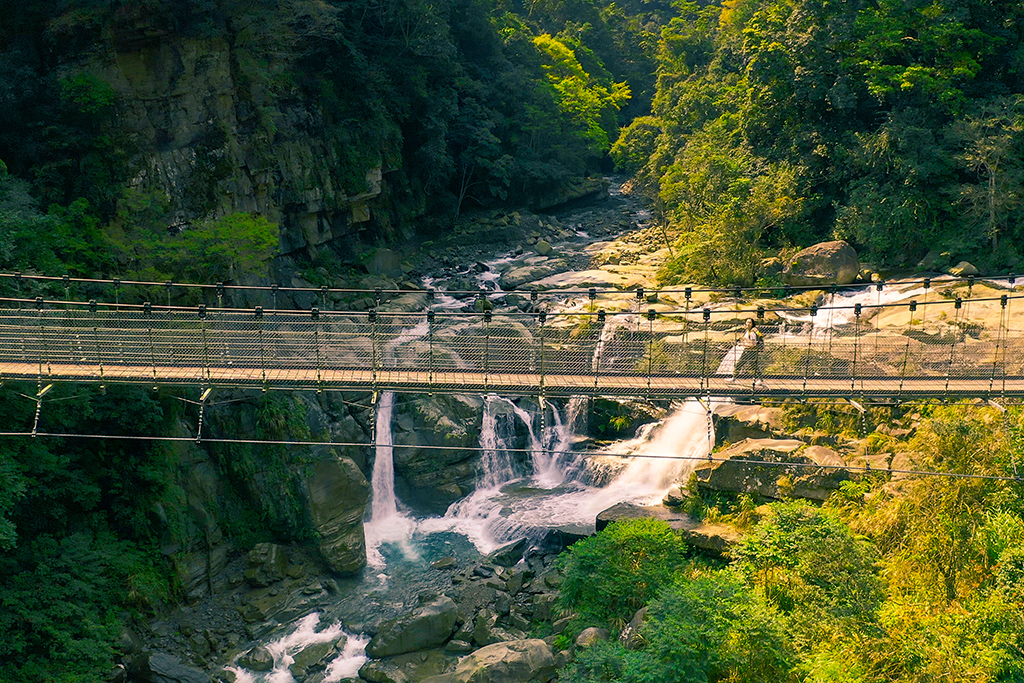 神仙谷瀑布与吊桥(图片来自台旅会)