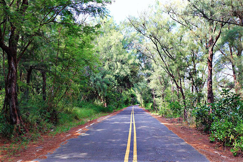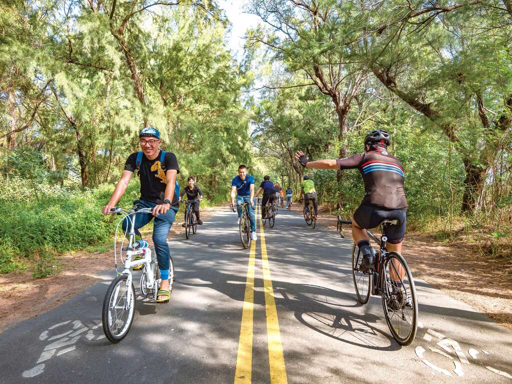 三条仑的黑森林自行车道前身原是牛车步道,骑乘途中可见当地的鱼塭风光与湿地生态。全线蜿蜒于木麻黄的浓荫之下,阳光自枝叶间洒落加上微风吹拂,有种置身森林秘境的感受。