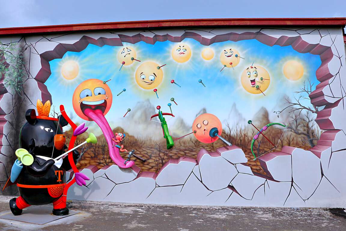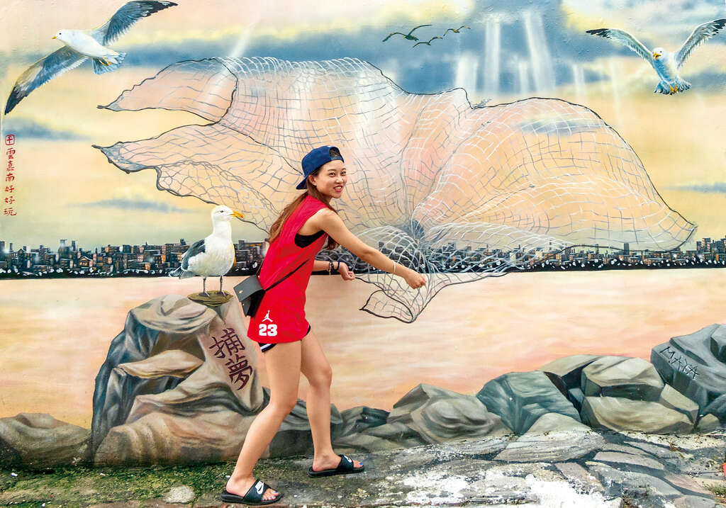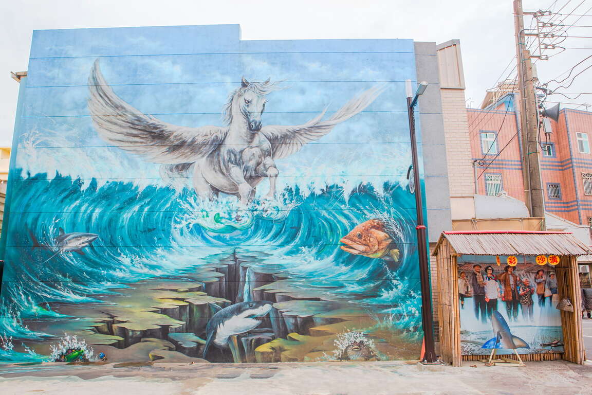 来到这座隐藏版的彩绘村,可以看到艺术家以诙谐方式重新诠释东方中国神话,呼应当地庙宇的传奇色彩,如四湖最知名的庙宇海清宫包公庙的包青天、盘古开天、牛郎与织女、哪咤大战东海龙王、西游记、嫦娥奔月等耳熟能详的神话人物为彩绘主题,同时加入更能凸显在地色彩的当地特产元素,如渔获及渔村生活等,为这小渔村重新注入活力,吸引海内外游客目光成为拍照打卡热门景点。