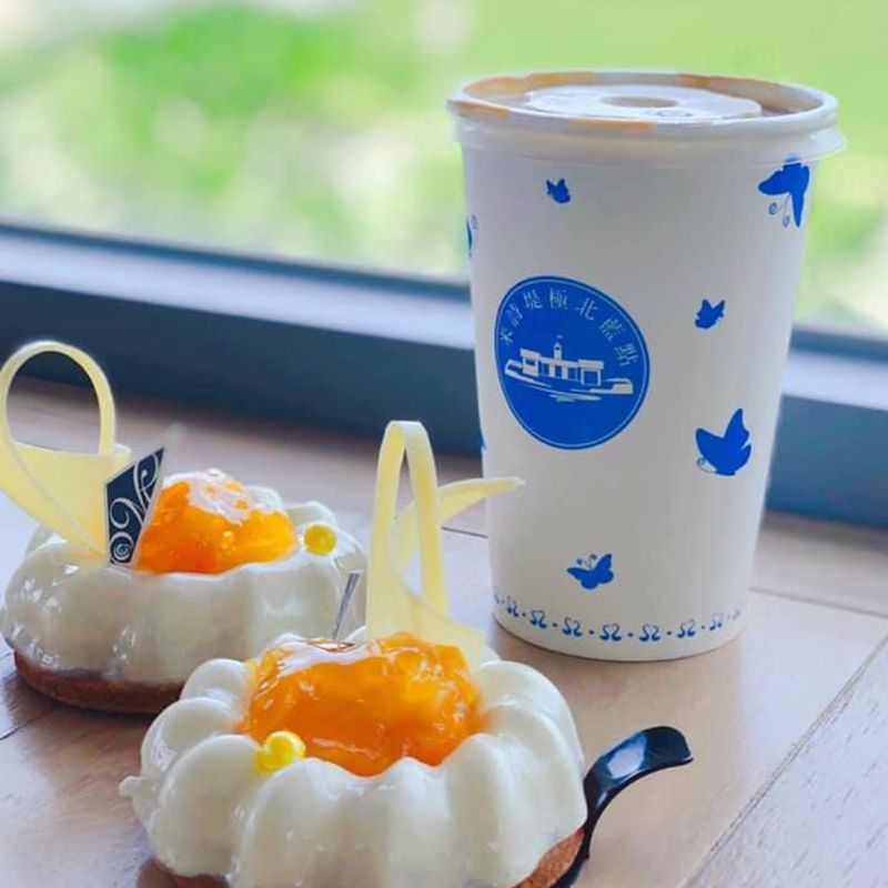 与海湾相临处有一栋白色的典雅建物-极北蓝点,原为废弃的旧海巡军营,经北观处改造活化后,现为甜点店,美味甜品加上超美视野海景,视觉与味觉超完美享受,是闪耀北海岸的在地人文据点。(图片来自北海岸及观音山风景区管理处)