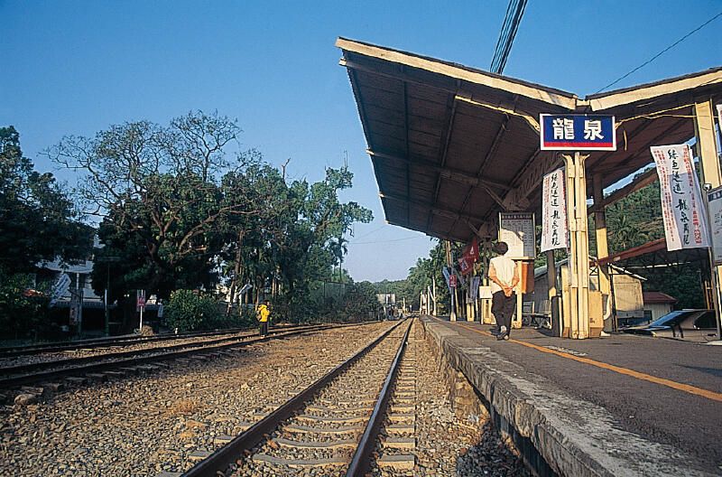 旧名「隘寮」,1979年5月改为招呼站,现为双月台。车站规模虽然简单,但因绿色隧道盛名于此下车的旅客不少。车站旁有棵百年树龄的苦练,绿荫遮天,是龙泉站的一大特色。(图片来自日月潭风景区管理处)