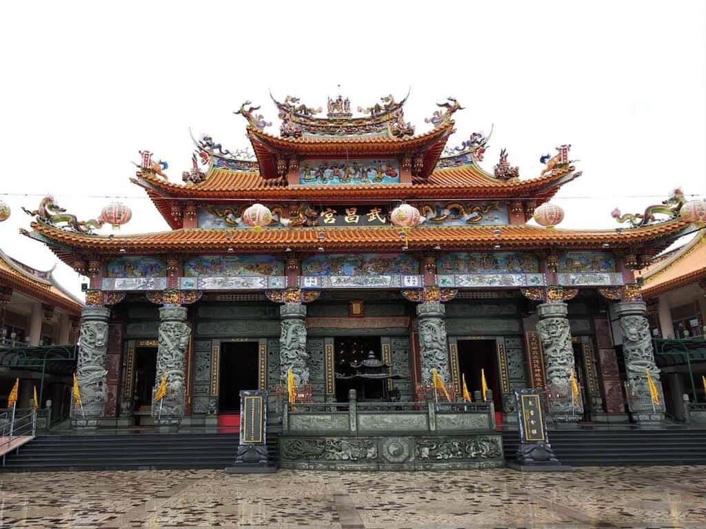 武昌宫于921大地震时从两层楼塌陷至一层楼,幸好信徒在余震中抢救神像,后于原址前方重建,旧的庙宇建筑则被保留下来作为地震的活教材保留灾后原貌,让人摄服于大自然的威力,集集镇唯一保留921地震遗迹的热门景点。(图片来自日月潭风景区管理处)