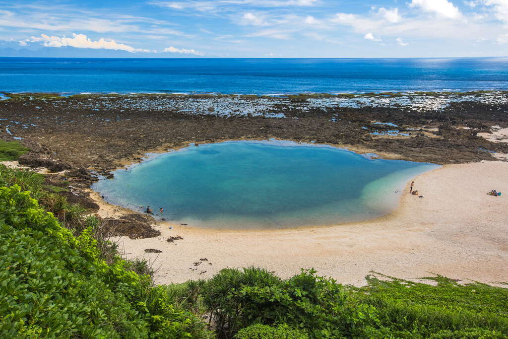 大白沙沙滩是由珊瑚、贝壳碎片组成的白色海湾,也是绿岛最大、最美丽的沙岸,清澈的海水透着柔白细沙,是许多情人眼里的浪漫约会地点!
