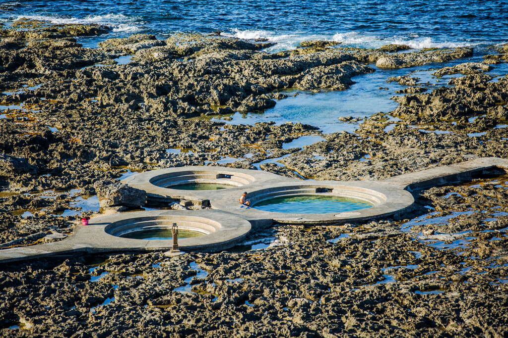 温泉区靠海处设有三个圆型露天浴池被珊瑚礁岩包围,浴池的水随着涨潮与退潮温度会产生变化,旁边的潮池有小鱼小虾在活动,形成最天然的三温暖。