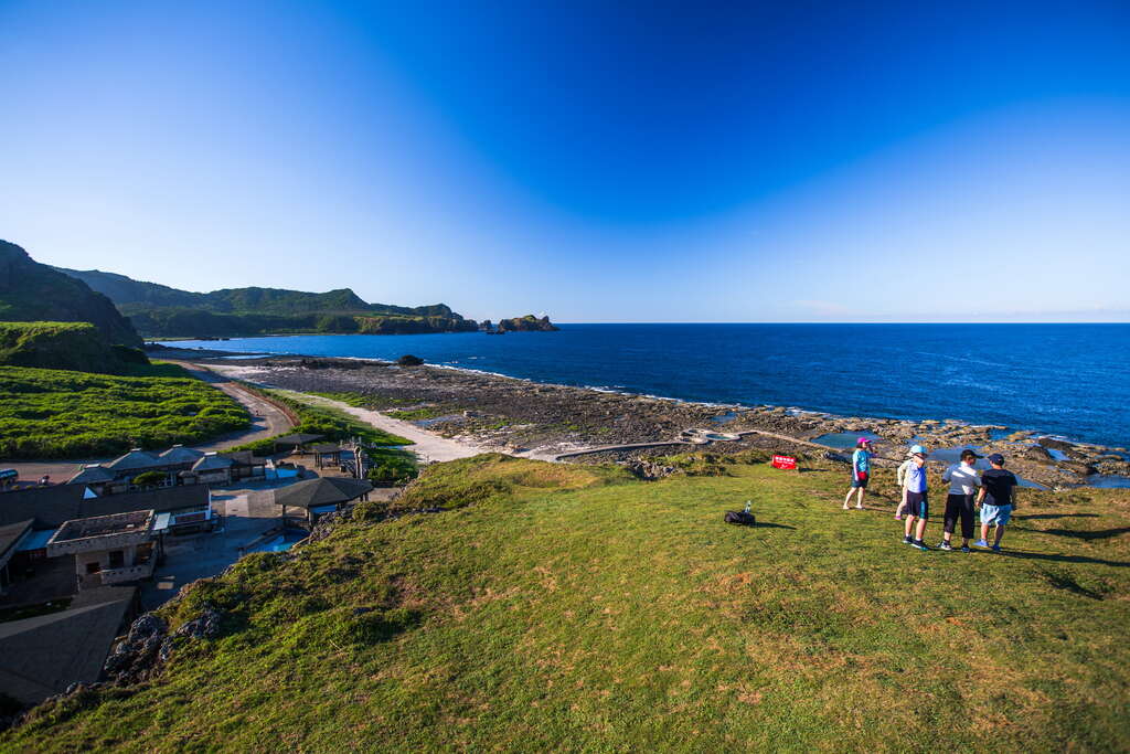 沿着石阶步行,走到步道终点时,在凉亭眺望绿岛环岛公路与海岬旁的孔子岩,绿岛的美景在此刻一览无遗。