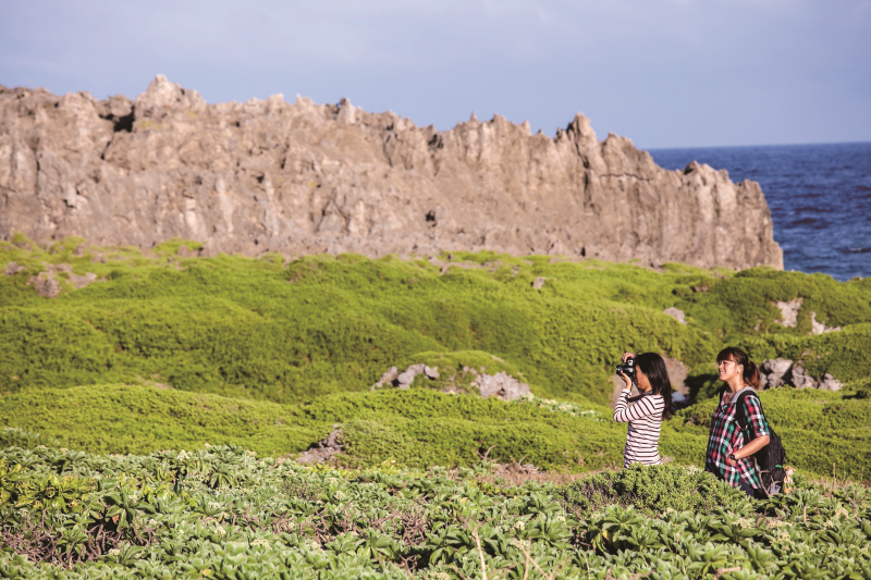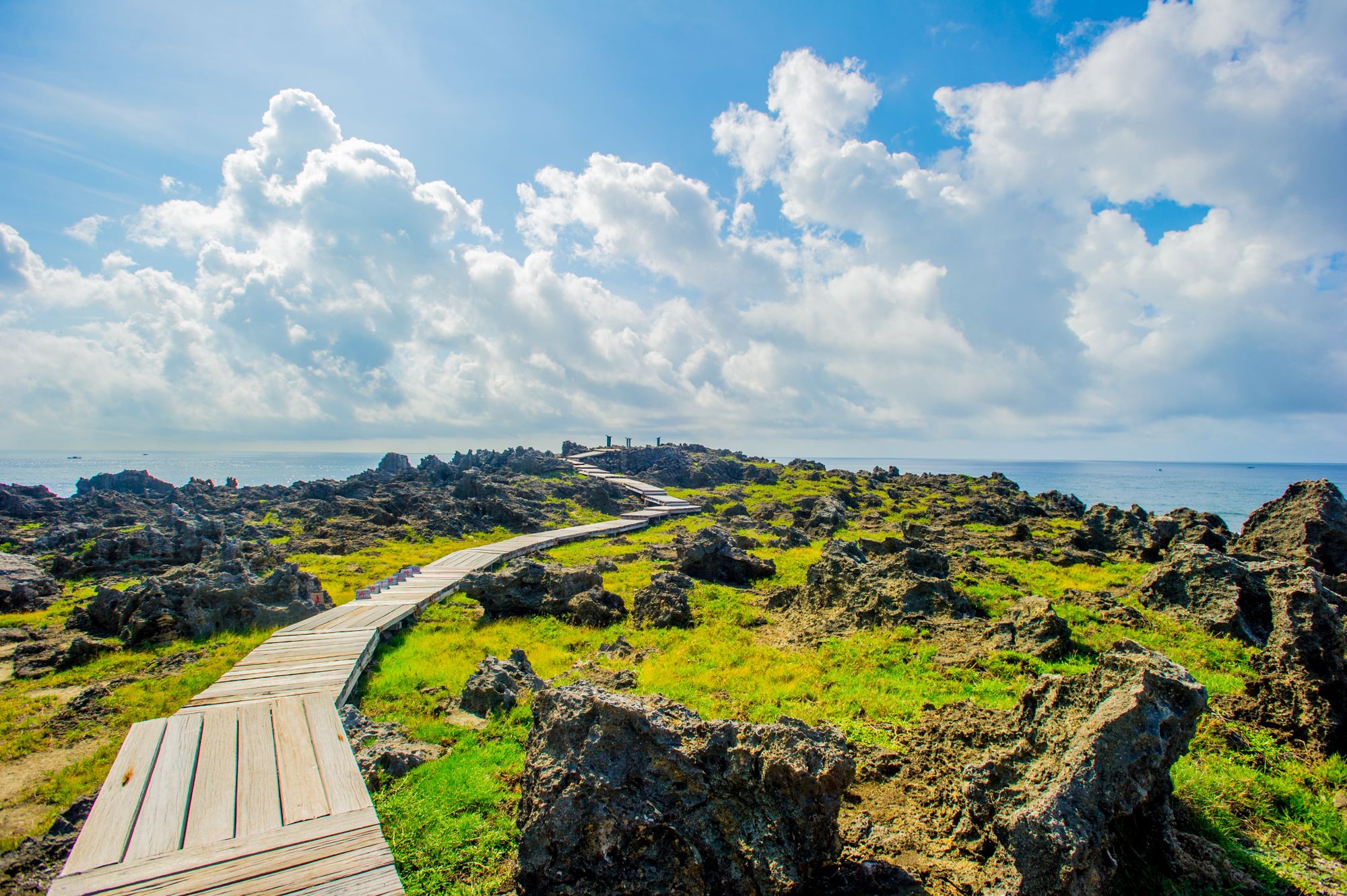 为保护这片珊瑚礁台地设有木栈道保护,绕着木道走,体验不同海蚀珊瑚礁与海构成的美景。