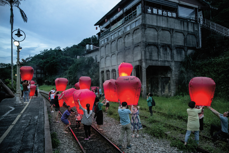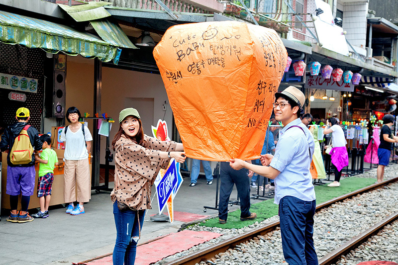 每年元宵节前后会在平溪沿线地区举办大型施放天灯活动,冉冉而上的上百盏天灯,点缀了夜空,传递了人们的幸福心愿。