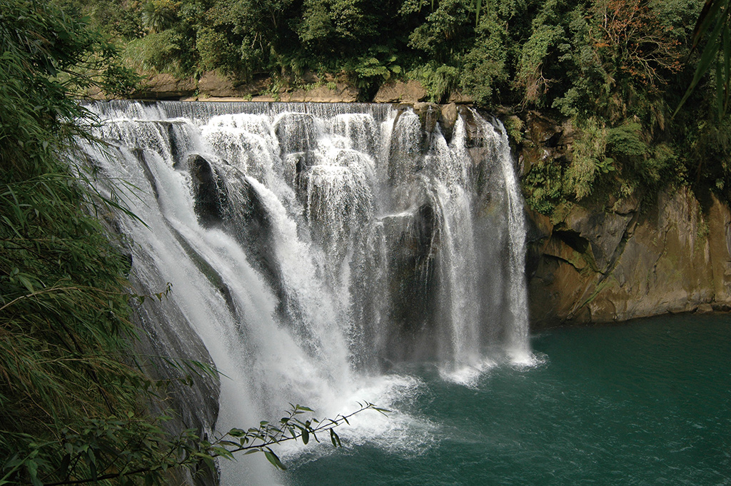 在平溪线铁路大华车站与十分车站之间,属幕帘式瀑布,瀑布下方水潭极深,瀑布就像千军万马奔腾,倾泻而下,感觉就像一袭白色绸缎,坠入一大片宽广深潭,瀑水形成的水气经常弥漫在瀑潭上方,经阳光照射,便呈现出一道彩虹,显现出晴空霓虹璀灿夺目,故有彩虹渊的美名。十分瀑布因岩层的倾向与水流相反,属于逆斜层瀑布,此情况与北美的尼加拉瀑布相似,使其赢得「台湾尼加拉瀑布」的美誉。