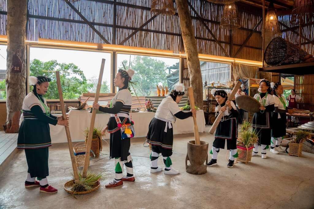 听布农人耕作与收获的故事,听和谐共鸣的自然之音;跟着布农朋友拿起木杵,感受长短不同的木杵敲击出高高低低的声响,学习传统歌谣,一起为小米丰收的喜悦摇摆歌唱。(图片来自花东纵谷风景区管理处)