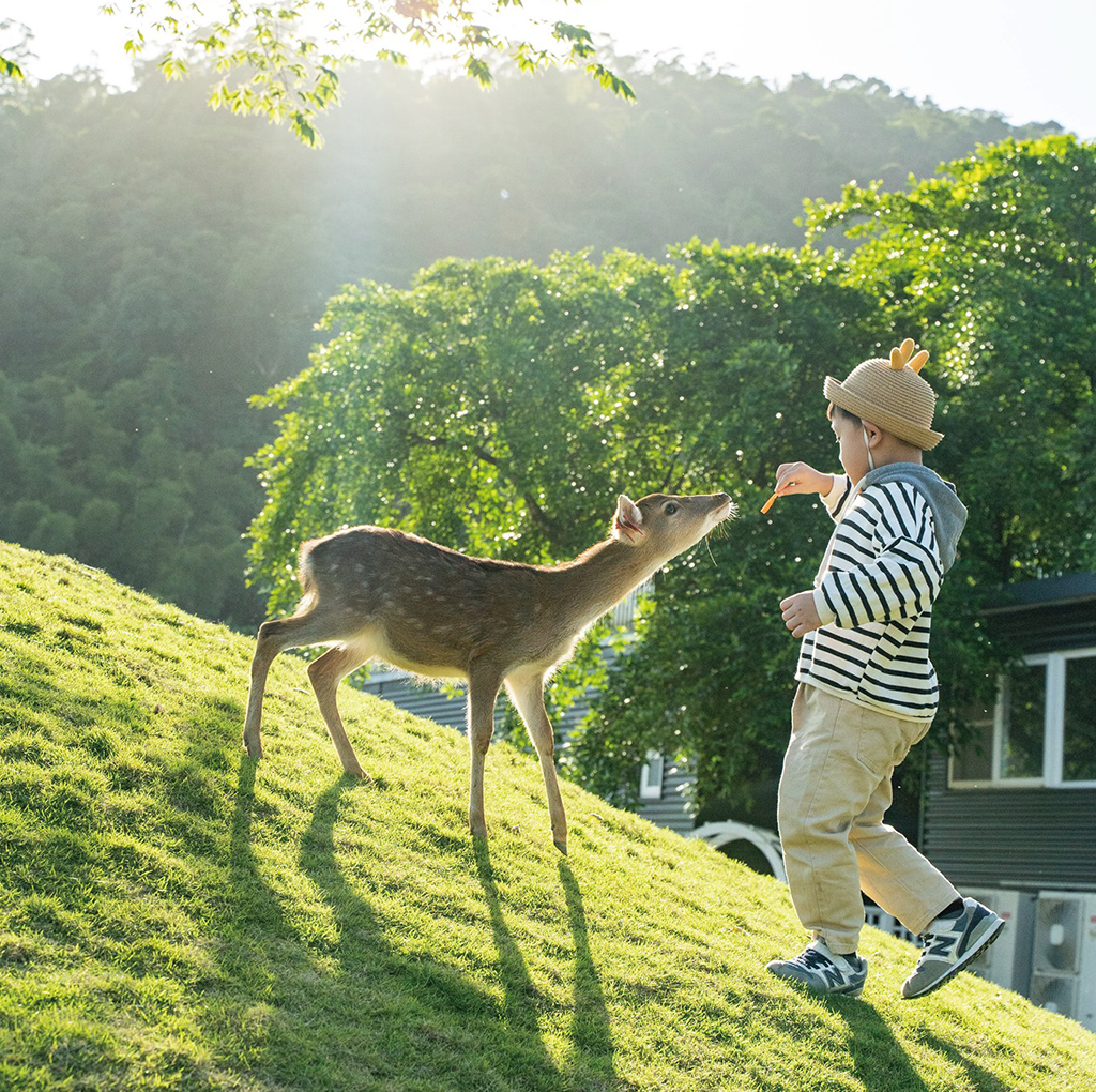 宜兰冬山的「斑比山丘」是一座梅花鹿天堂,来到这里可以近距离的与可爱的梅花鹿互动,购票入场可以门票兑换一份饲料,喂食园区内自在于草皮上漫步的梅花鹿,非常适合亲子全家大小一起前来体验。