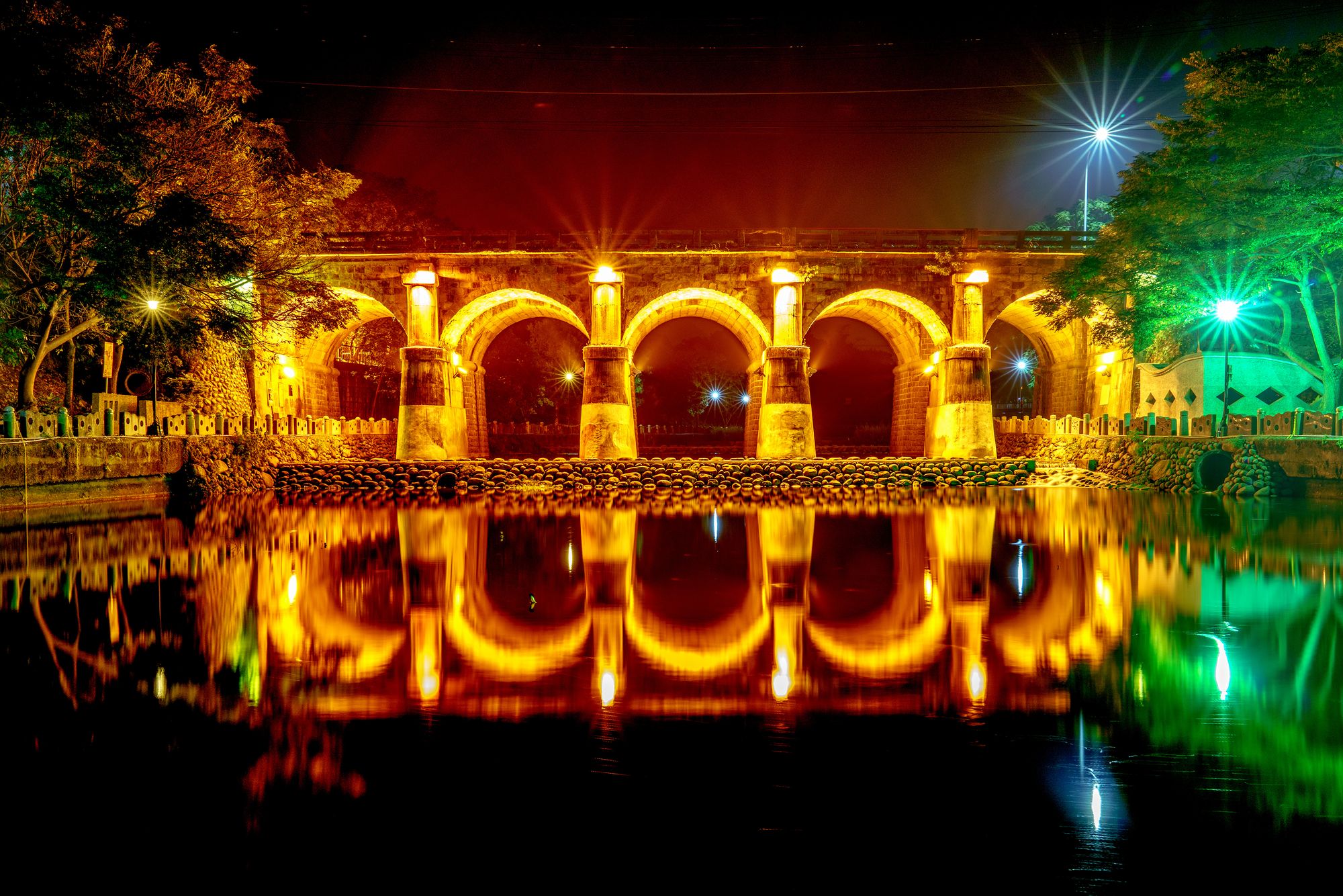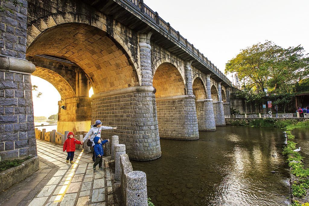 横跨牛栏河两岸的东安古桥,为五孔石砌拱桥,兴建于日治时期,如今是珍贵的县定古迹,造型兼具结构与美学。由当地仕绅聘请日本技师设计,完工至今已有百年历史,每一块桥石各有不同色泽纹理,韵味十足,,更吸引了电影「我的少女时代」来取景拍摄,是网美们必去的热门打卡景点。时序进入9月逐渐步入秋季之时,沿着河边步道两旁种植的台湾栾树开出鲜艳的黄花,在潺潺流水,绿叶、红果衬托下,彷佛走进画中,美不胜收!