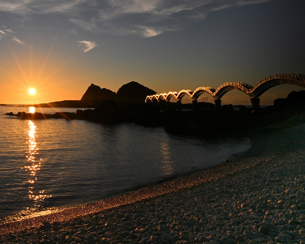 旧东河桥位于连接成功镇与东河乡的马武窟溪出海口。当东河新桥启用后便禁止车辆通行的旧东河桥,由于桥的两岸岩性不同,因此桥的北半段设计为圆拱型,而南半段仅能设计成水架型。游客能够漫步于桥上,欣赏碧绿的马武窟溪缓缓流入大海的美景。