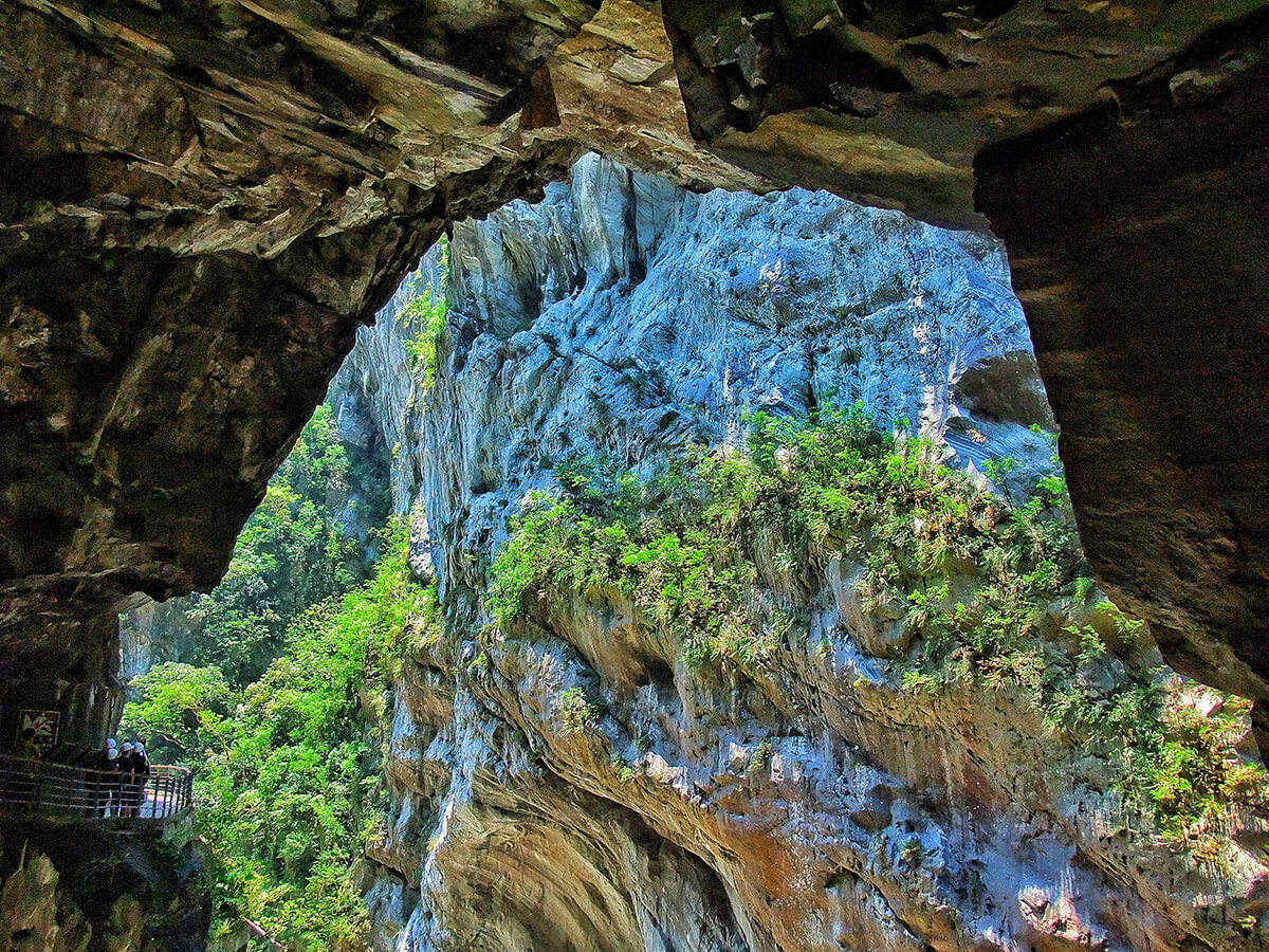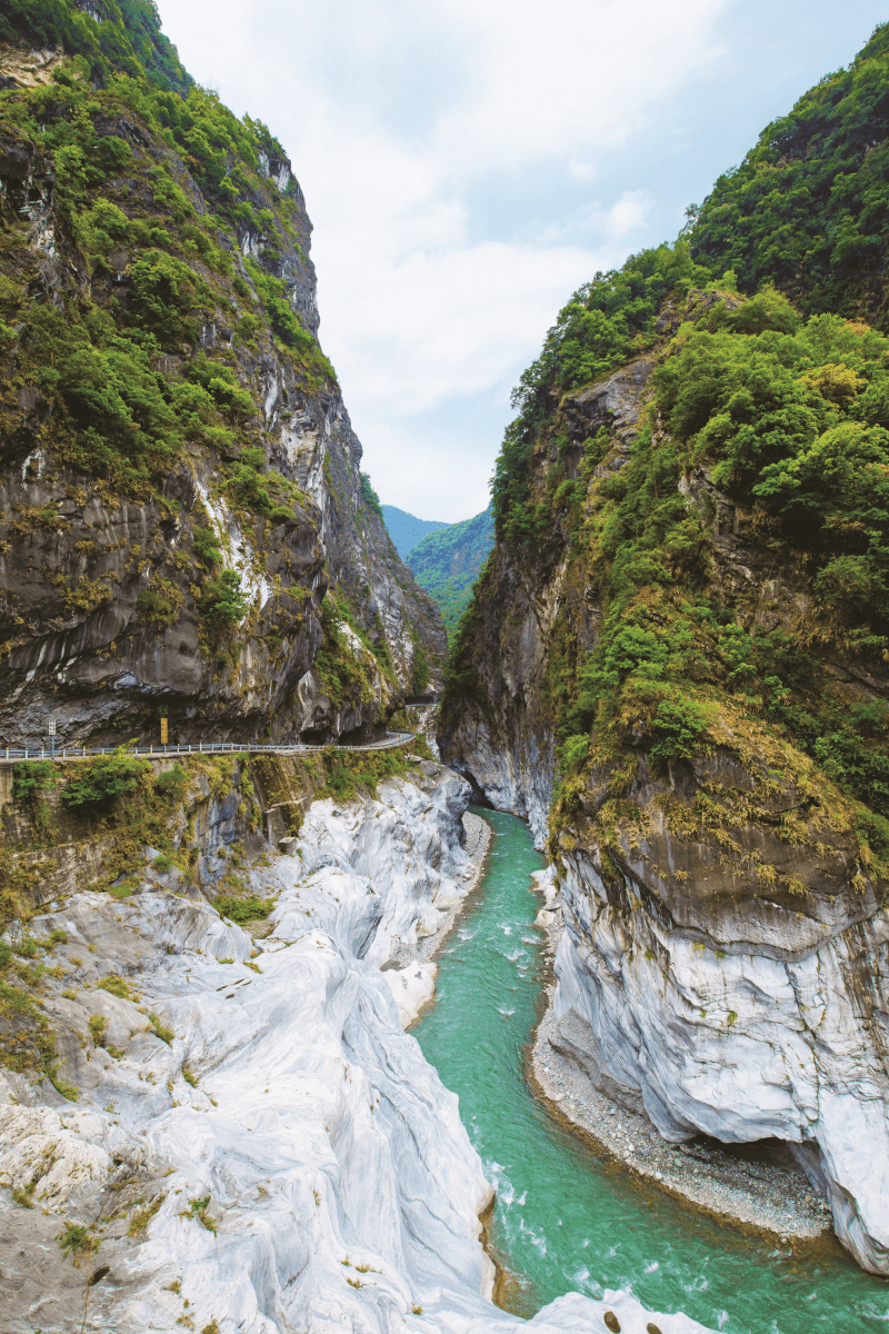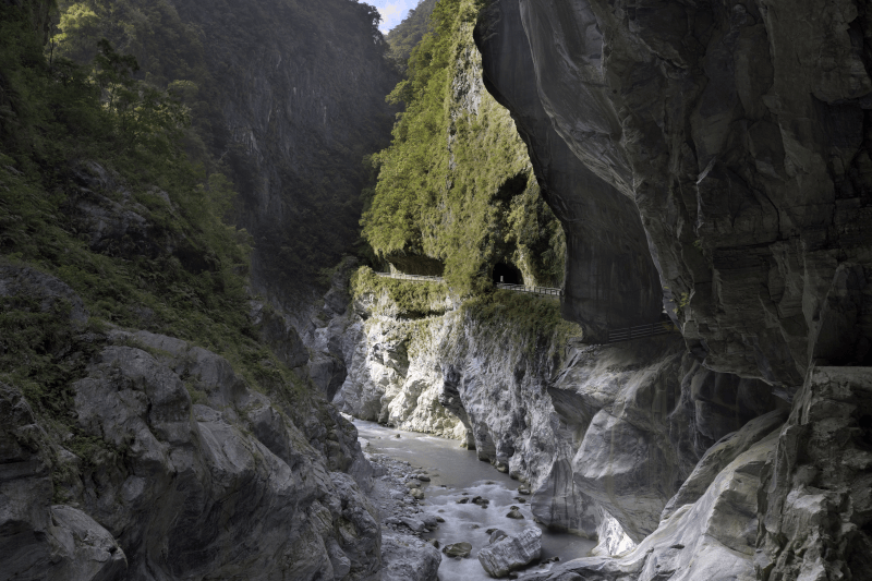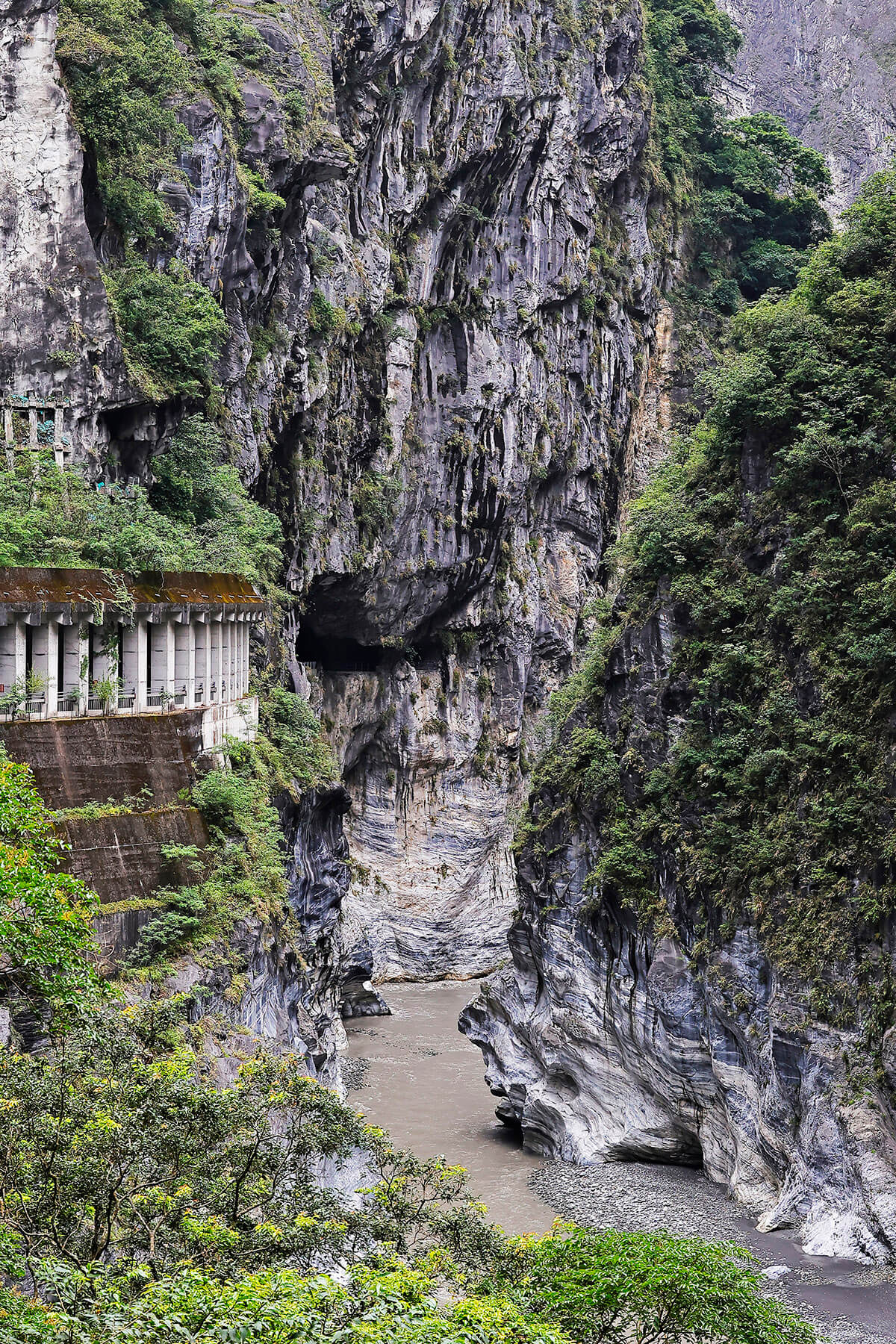太鲁阁公园以雄伟壮丽、几近垂直的大理岩峡谷景观闻名。沿著立雾溪的峡谷风景线而行,触目所及皆是壁立千仞的峭壁、断崖、峡谷、连绵曲折的山洞隧道、大理岩层和溪流等风光。
