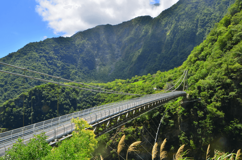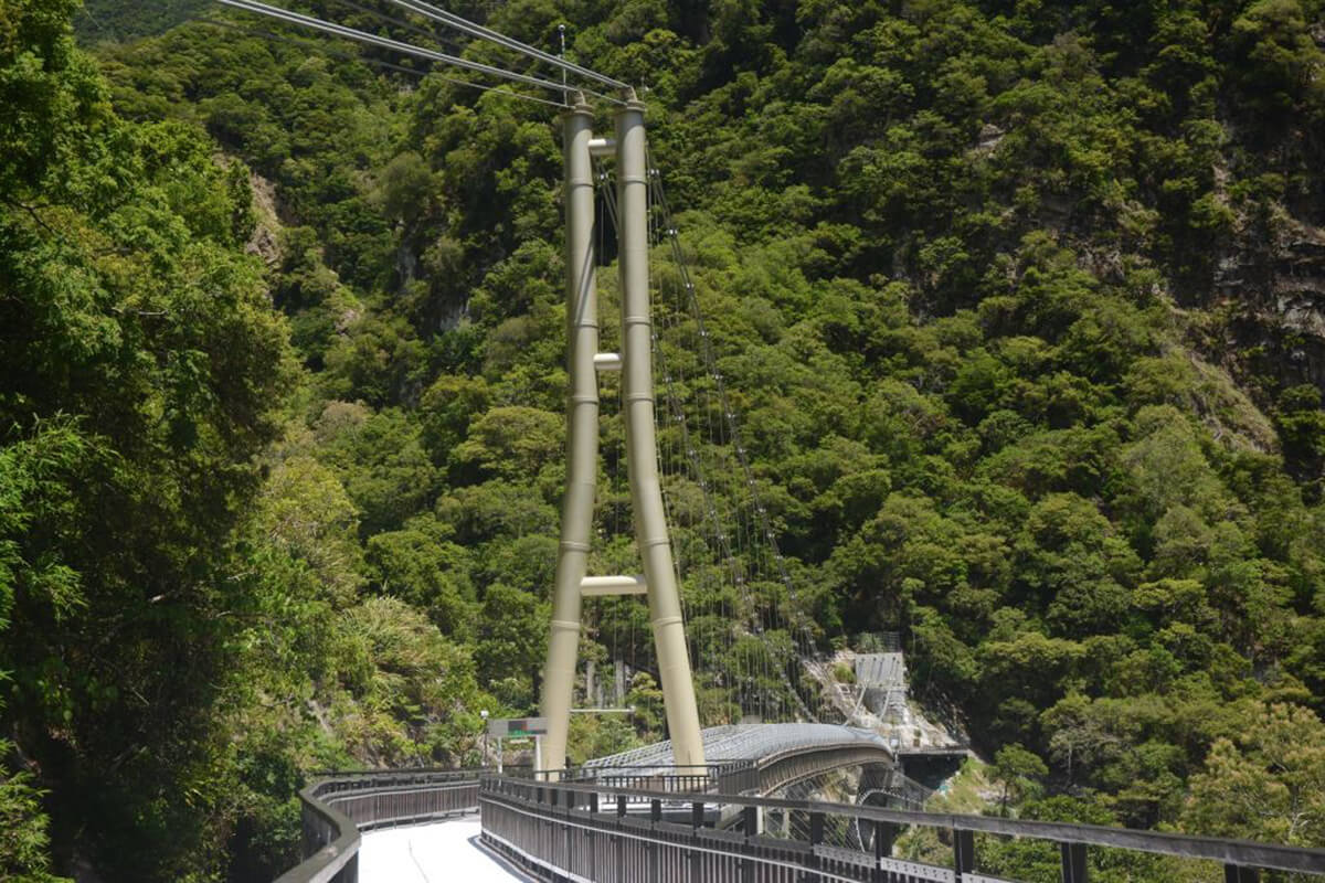 建于日据时期的布洛湾吊桥,是太鲁阁峡谷中最长的铁线桥,同时也是台湾目前「深跨比最高」的峡谷吊桥,若从上方往下俯瞰,立雾溪切割出的峻秀山型和壮阔景观,以及绝美景色必定全都映入眼帘。