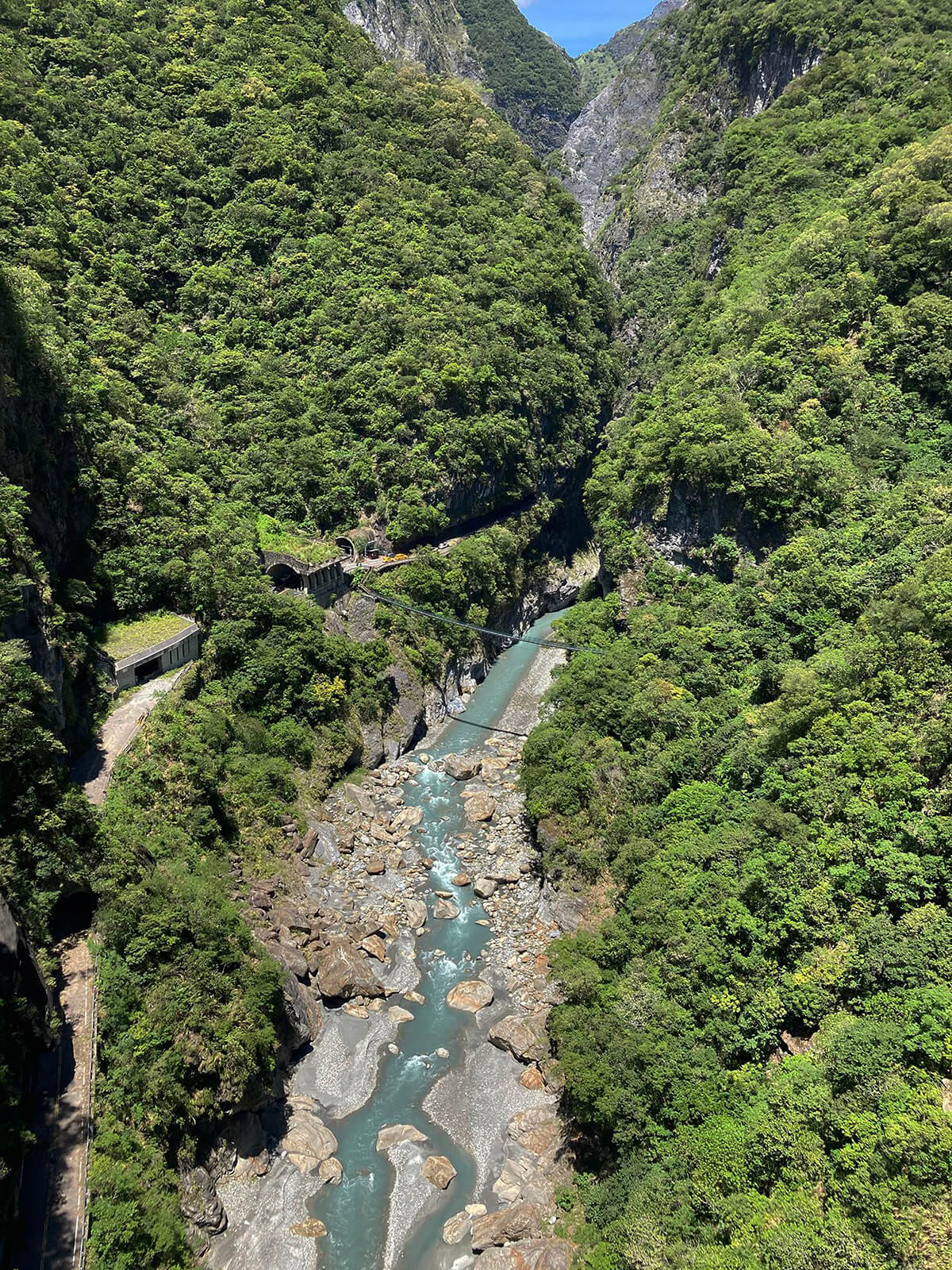 由布洛湾吊桥上眺望锥麓吊桥与燕子口 (Photo via Wikimedia, by 太鲁阁公园)