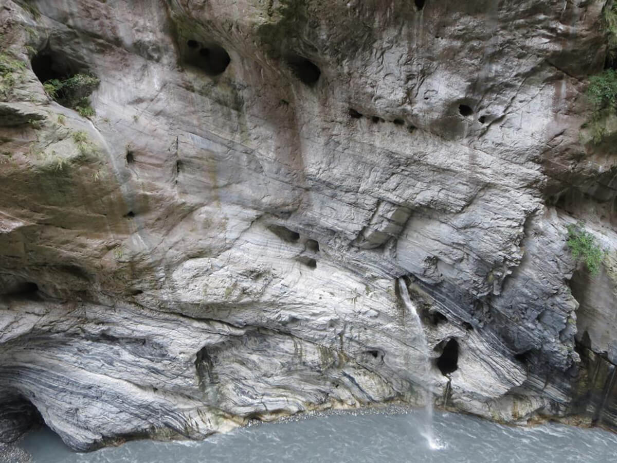 燕子口对岸山壁有许多洞穴,这即是「壶穴」,是燕子口最具特色的地形景观。