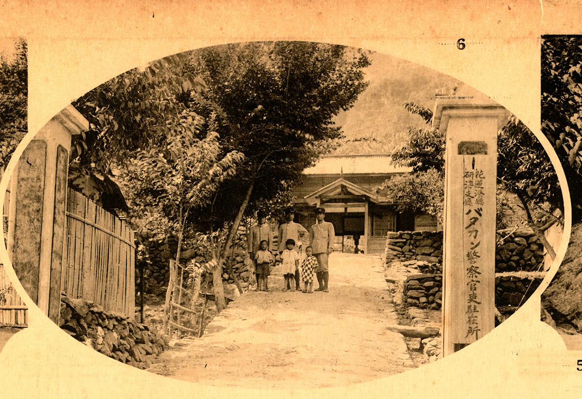 大正 3 年 (1914) 的太鲁阁战争让太鲁阁族人归顺日方,由此开始开凿连通各部落间的道路与设立驻在所监视太鲁阁族族人。巴达冈 (Batagan) 驻在所位于标高 400 公尺处,附设有交易所、疗养所、蕃童教育所,管辖 2 蕃社 107 名太鲁阁族族人,由30名警察组成。此地为日治时期进入内太鲁阁的重要节点之一。创作者:毛利之俊。建档单位:花莲县文化局。数位物件授权:PDM 。发布于《文化记忆库》