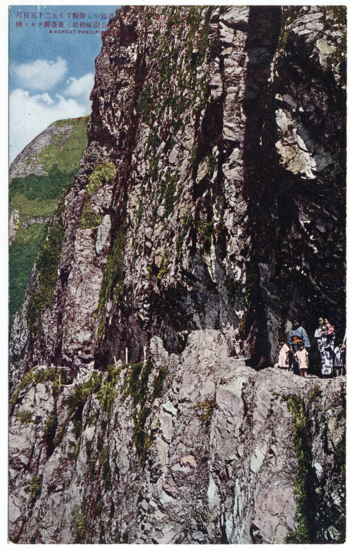 本影像为太鲁阁族妇女带著孩童,在断崖处留下的照片纪录,今日行走在古道上,仍可追忆当时居民来往的身影。创作者:花莲县文化局。建档单位:花莲县文化局。数位物件授权:CC BY 吕鸿玮。发布于《文化记忆库》