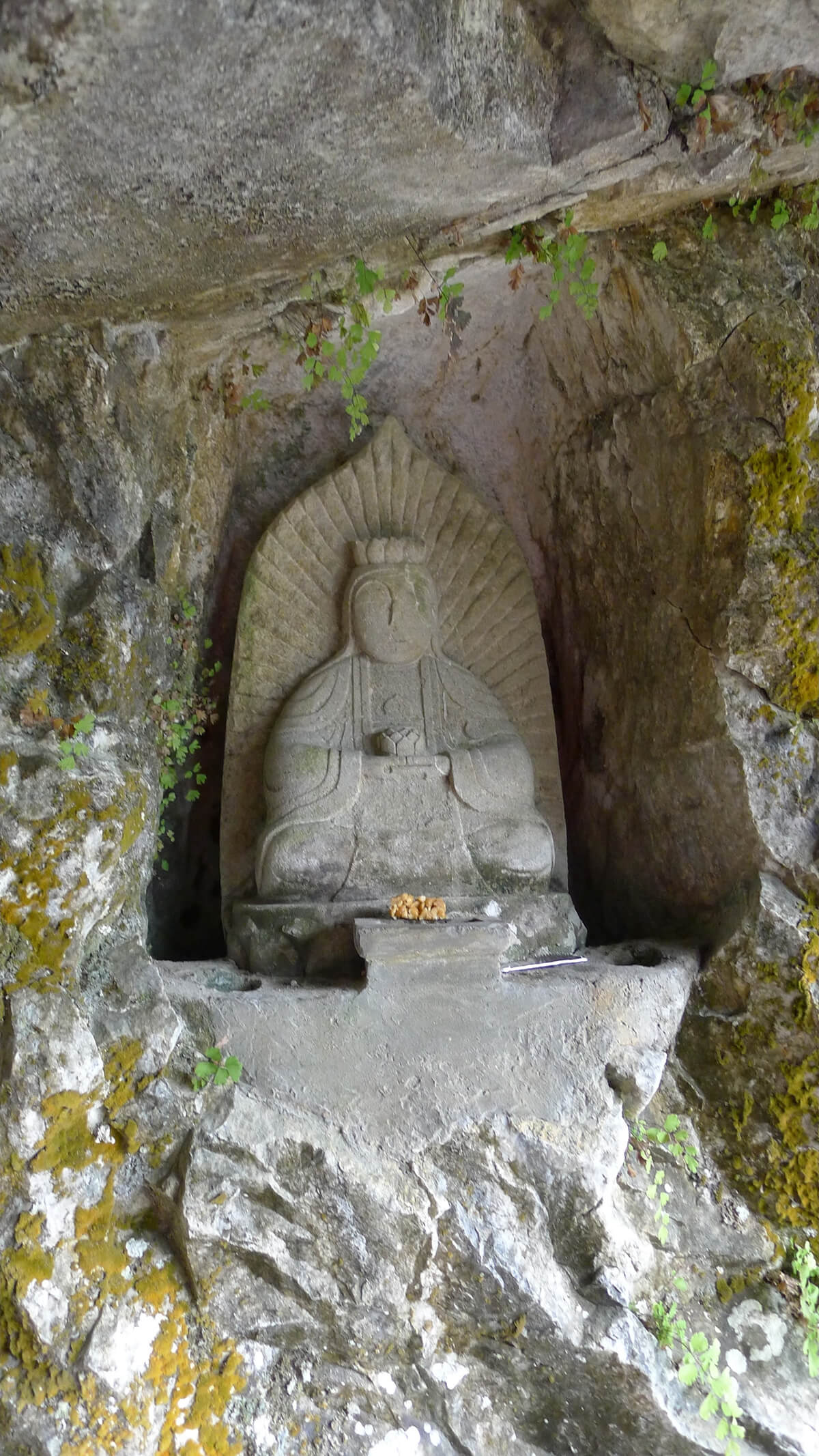 行走锥麓大断崖时,中途会经过一个小隧道,隧道内供奉著一尊石雕菩萨,而隧道外的石壁上刻有大正叁年梅沢作(业队)开凿纪念的字样,其实,锥麓段的古道正是在 1915 年由梅泽柾警部带领作业队开凿完成。