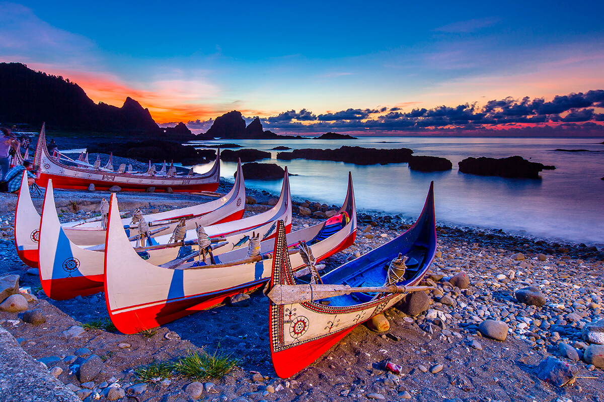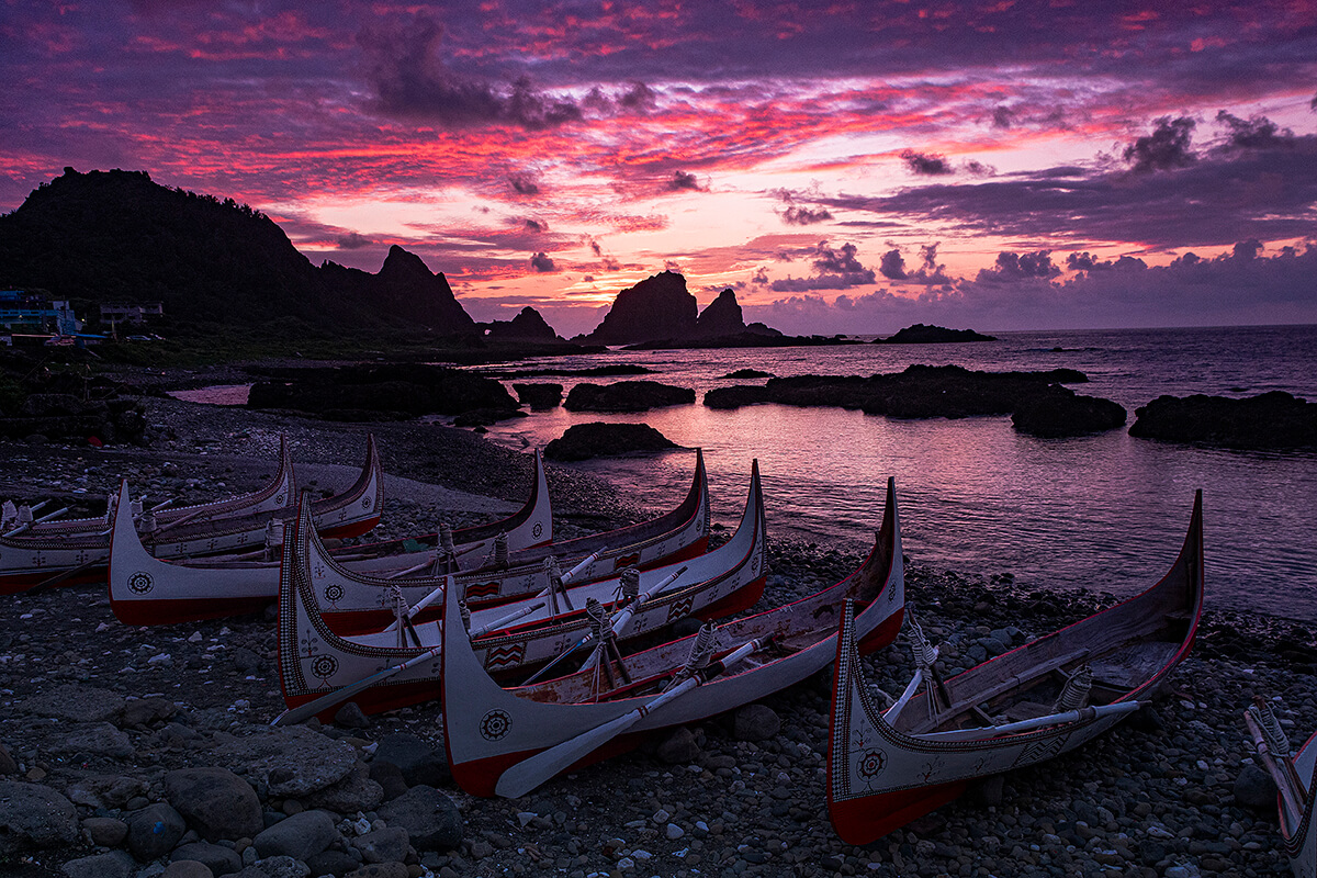 东清湾是兰屿迎接日出的热门地点,停放在岸上的拼板舟加上千变万化的日出云彩,充分呈现出兰屿最吸引人的自然与人文样貌。
