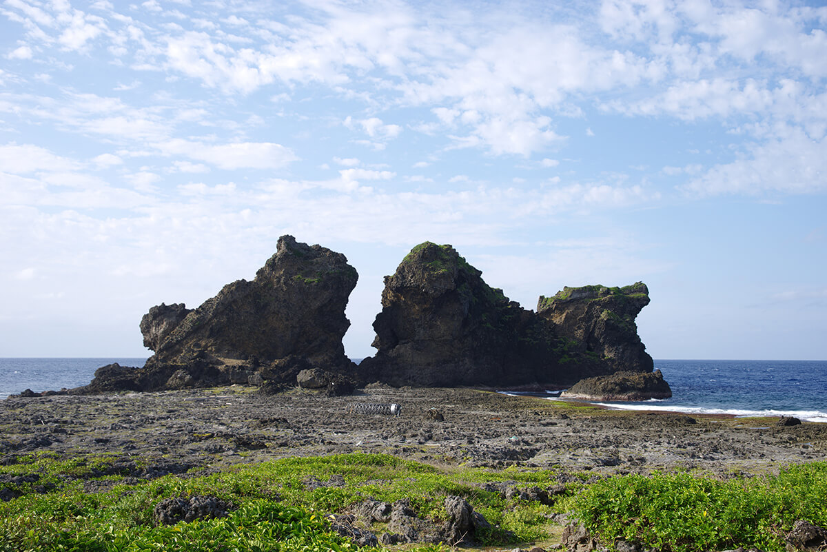 双狮岩是许多钓友心中非去不可的一级钓场,尽管面临深遂的大海,形势险恶,岩面上又布满锋利的礁石,仍然阻拦不了他们日日来到这里撰写「钓鱼迷日记」。这里也是兰屿最著名的风景区,没有人来到兰屿而不到此留影的,从海上往陆地看,双狮岩正好一分为二,岩块远望像极了双狮对卧,后面还跟了一头小狮子,十分惹人怜爱,因此,又有人将此岩称作「双狮卧」,达悟族人(雅美族人)将此岩称作Jipanatosan,意为「东清」和「朗岛」两个部落之间的分界线。(Photo via "aisiterucat" © IMGP5075 @ flickr, CC BY-NC-ND 2.0)