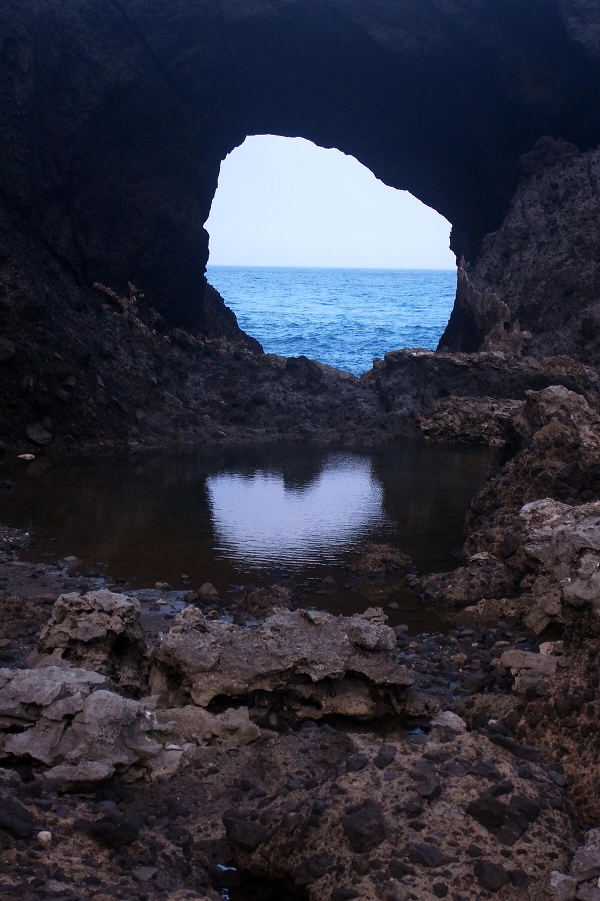 情人洞四周岩石峥嵘巨浪波涛汹涌,海浪冲击其间涛声隆隆,相当壮观,洞下四周岩石将海水围成深潭,水色清澈见底,洞内清幽宁静,为观潮、听浪与情人赏月的好去处。情人洞地处偏远,岩石险峻,静坐其中聆听涛声颇有超凡脱俗的化外感觉。传说有一部落居民走进黑暗的洞穴中,不小心掉入另一个更深的洞窟,未有人发现。多年以后,这个人从 dojisangi (青青草原) 的岩洞中走出来,已成白发老人。